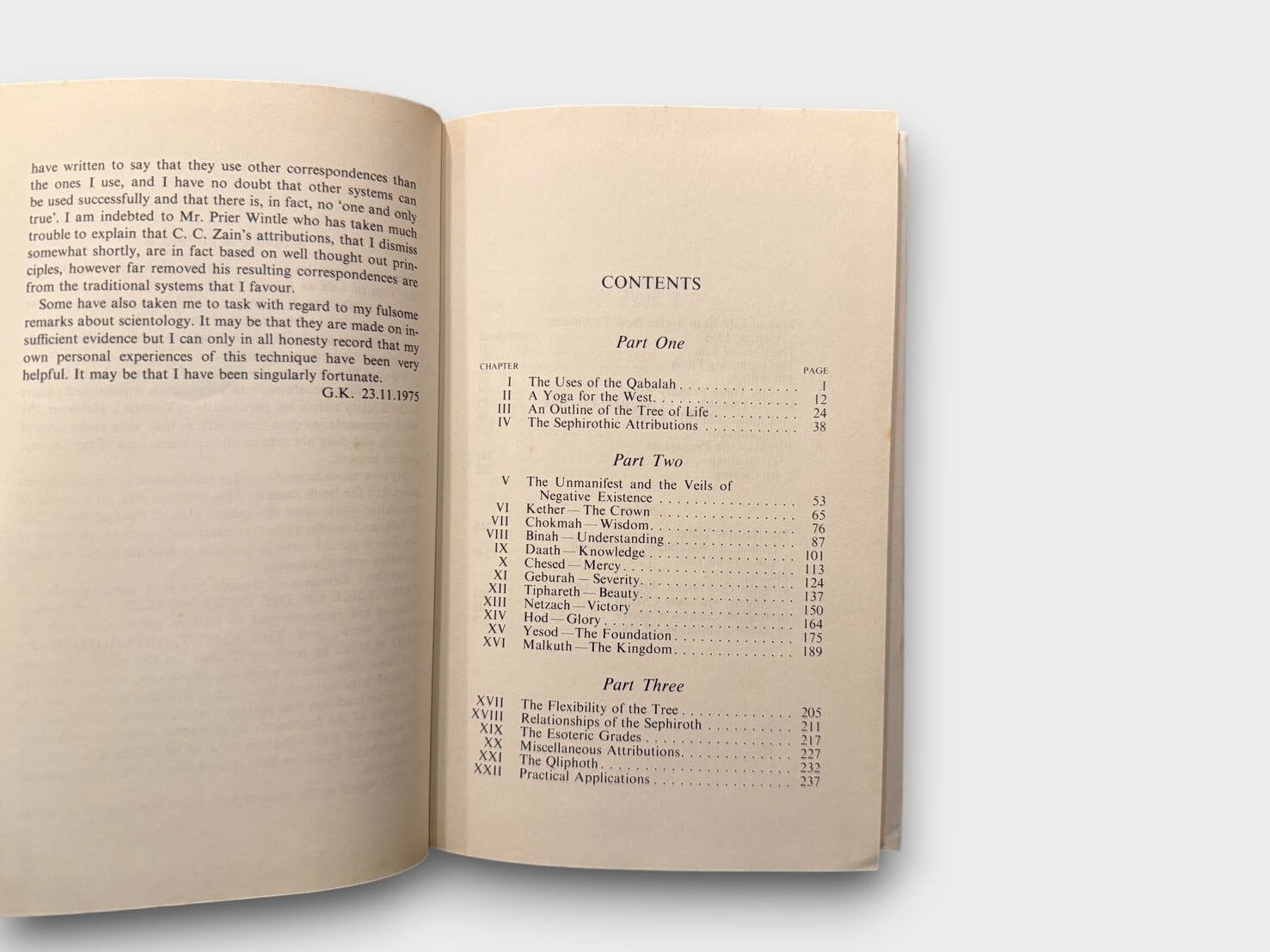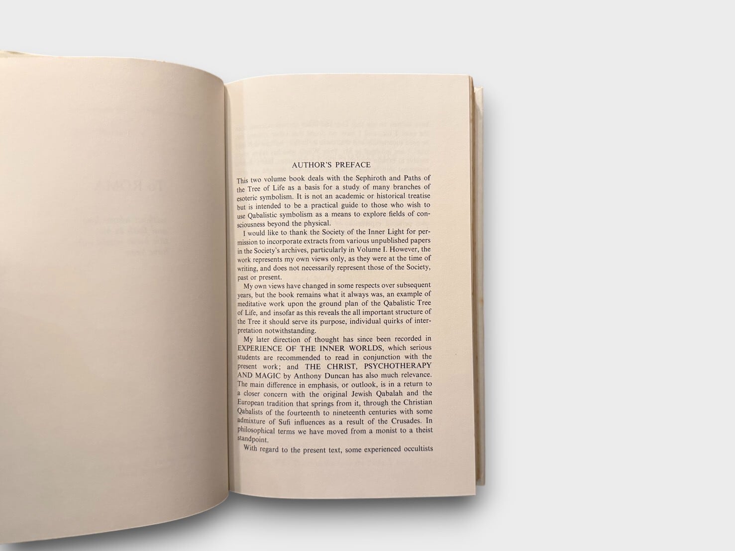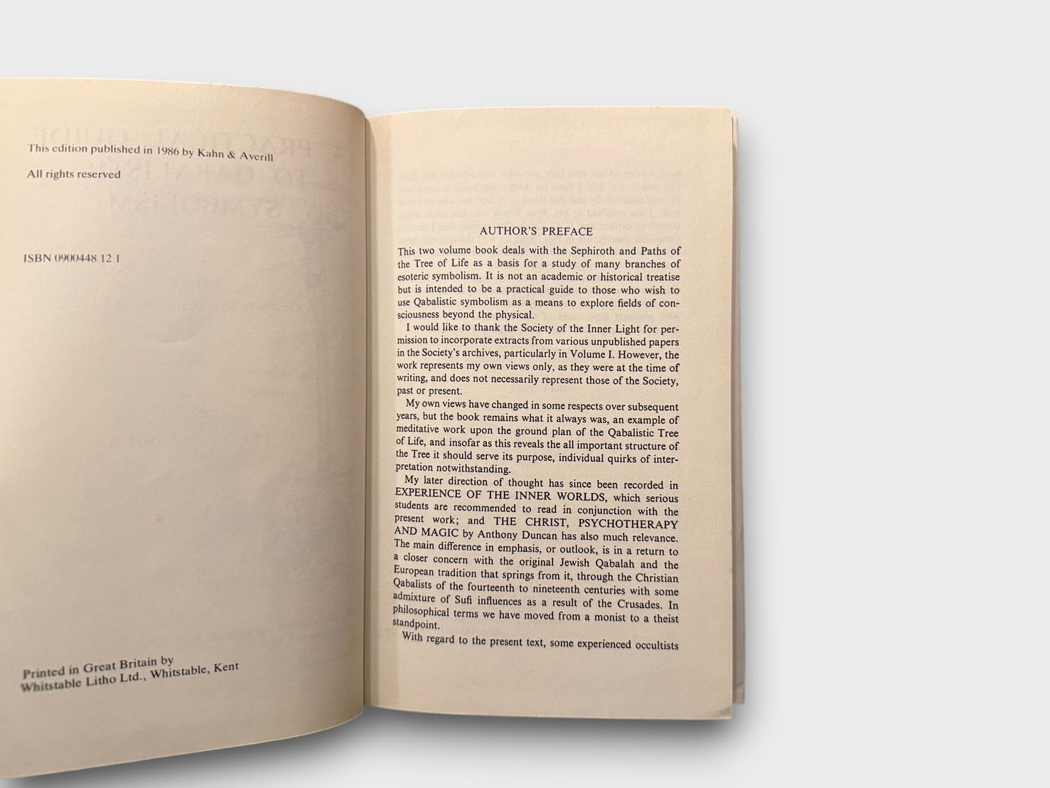 西洋秘教思想におけるカバラ(Qabalah)象徴体系を、実践と読解の両面から扱う二巻本。Vol. I では生命の樹(Tree of Life)のセフィロトを中心に象徴体系の構造を整理し、Vol. II ではパス(Paths)とタロットの対応関係を主軸に、ヘブライ文字や占星術的対応を含めて展開する。本書は学術的・歴史的研究書ではなく、象徴を内的作業のための実用的な道具として扱うためのガイドとして執筆されている。20世紀西洋秘教思想の実践的文脈に基づき、体系的にまとめられた貴重なセット。