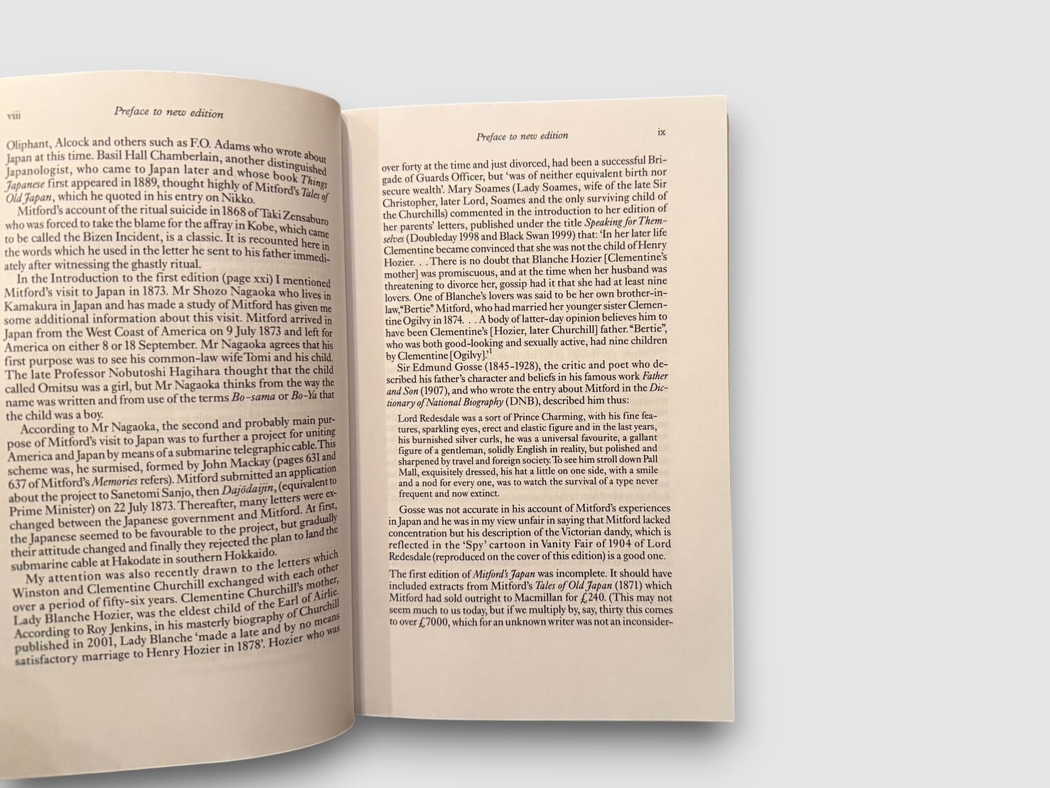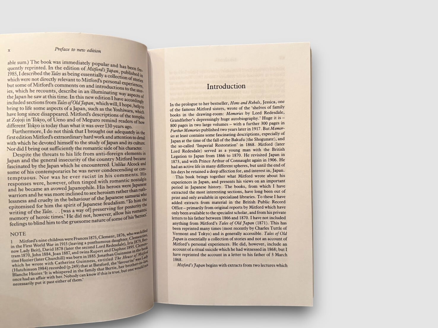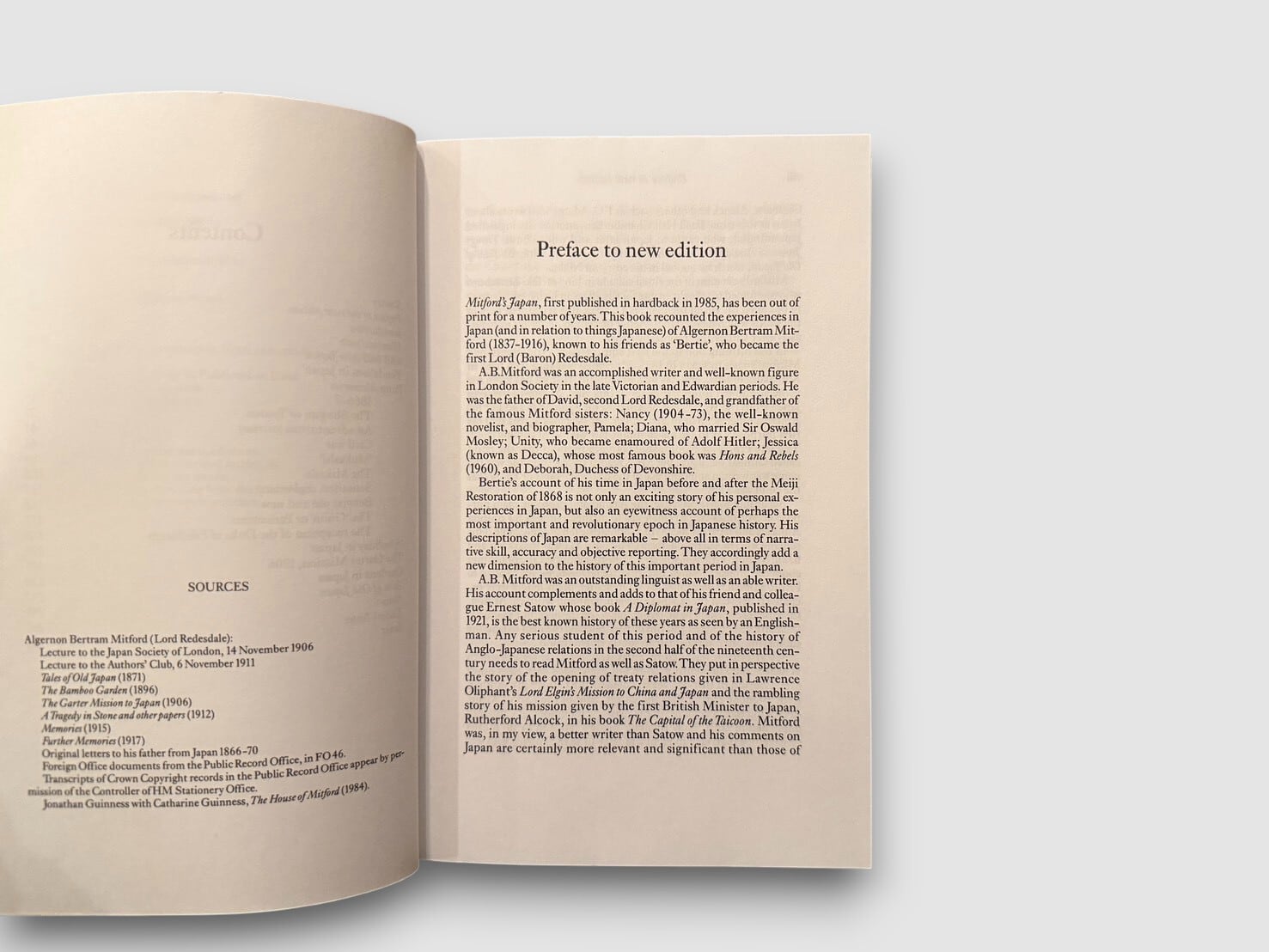 幕末から明治にかけての日本を、英国外交官アルジャーノン・バートラム・ミットフォード(レッズデイル卿)の回想としてまとめた一冊。対象期間は1866-1906年。政治や外交の周縁だけでなく、当時の社会や人々の気配までを、外から来た観察者の視点で描き出している。2002年刊のRevised Edition。