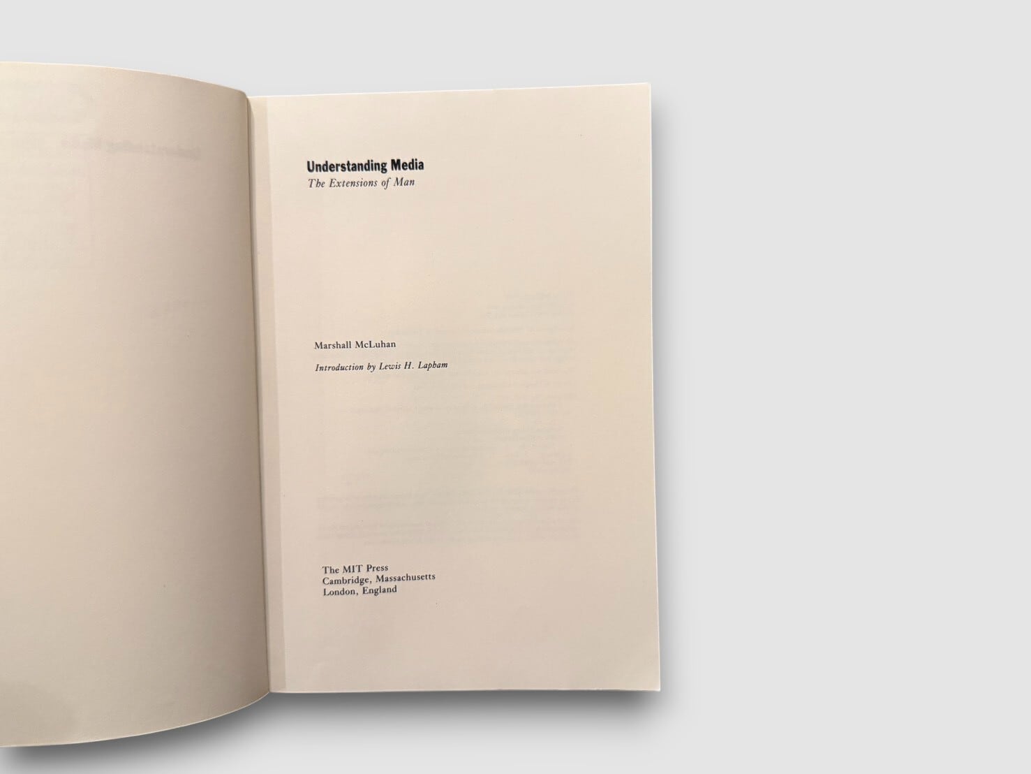 カナダ出身の英文学者、文明批評家であるマーシャル・マクルーハンが、近代以降のコミュニケーション技術が人間の知覚や社会の構造に与える影響を、独自の視点で捉え直した古典。メディアを情報の器としてではなく、人間の身体や感覚の“拡張”として位置づけ、印刷、写真、電話、テレビなどが生活のリズムや認識の枠組みをどのように組み替えるかを論じている。MIT Press editionの第8刷(1999年)。メディア研究・文化研究・社会理論の文脈において、現代の状況へも読み替え可能な参照点として扱われてきた一冊である。