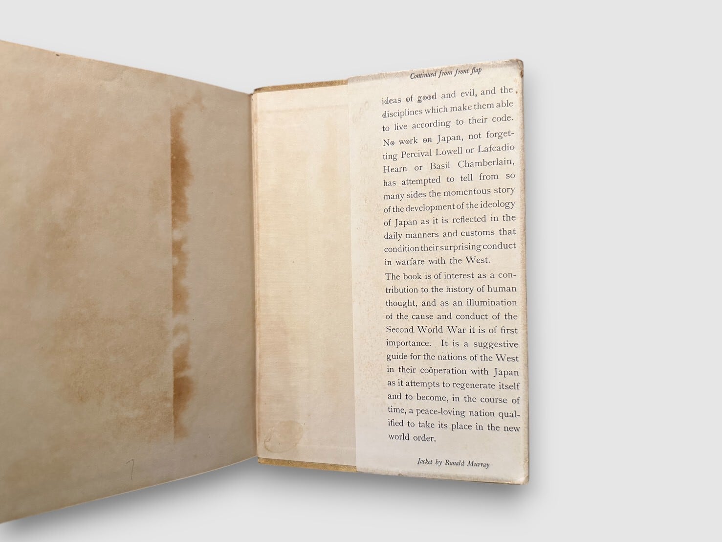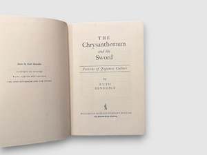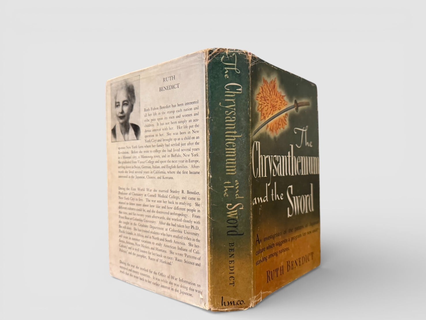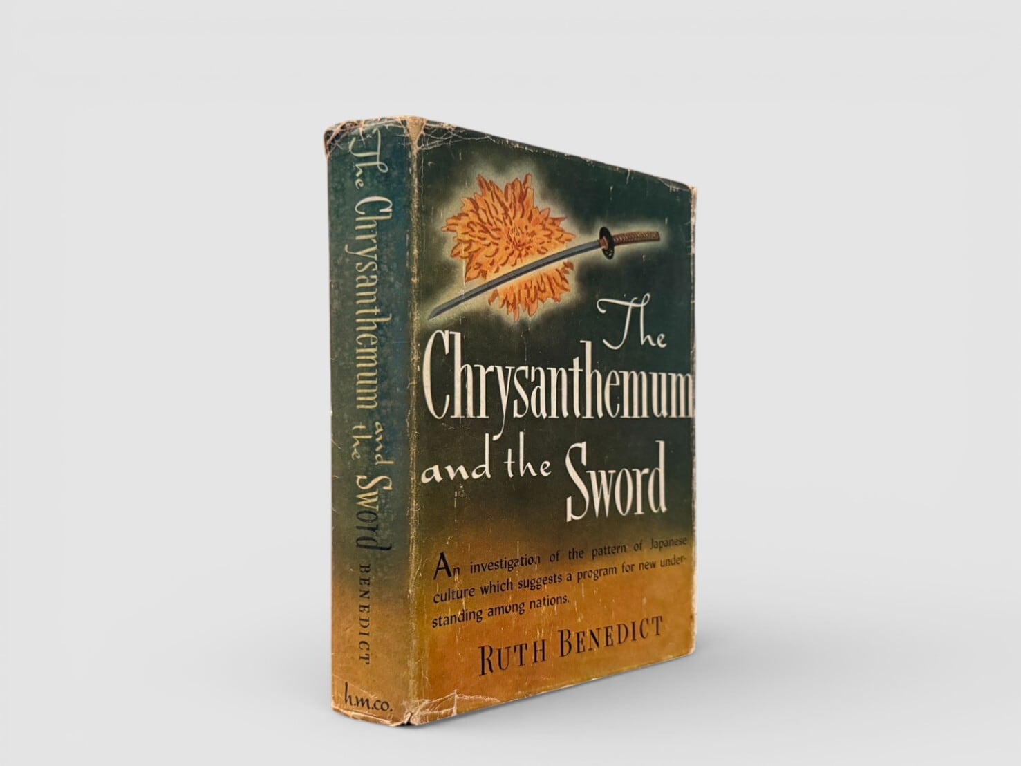 第二次世界大戦中に米国戦時情報局の依頼により執筆されたルース・ベネディクトの代表作『菊と刀』。日本文化を体系的に分析し、義理・恩・階層意識・規範構造などを通して社会の行動原理を読み解いた戦後文化人類学の古典。戦後初期における対日理解の枠組み形成に大きな影響を与えた一冊として広く知られる。1946年に刊行された貴重な初版(刷未確認)。