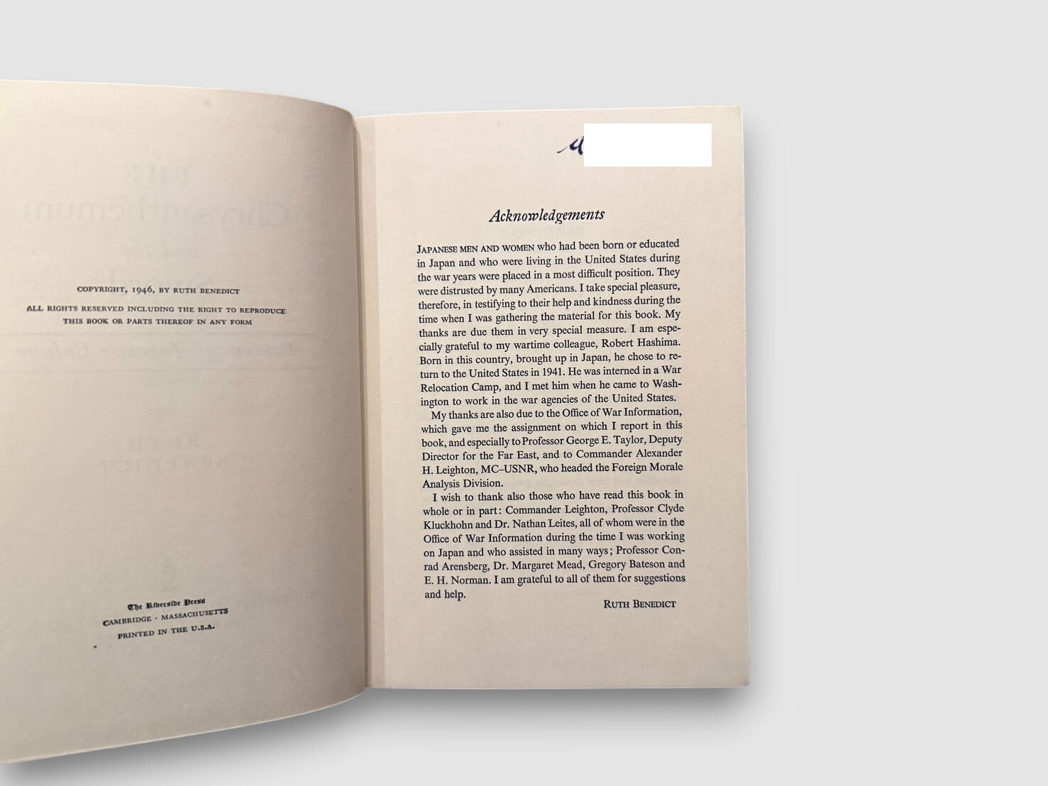 【RL178】【FIRST EDITION】The Chrysanthemum and the Sword: Patterns of Japanese Culture(1946) /Ruth Benedict