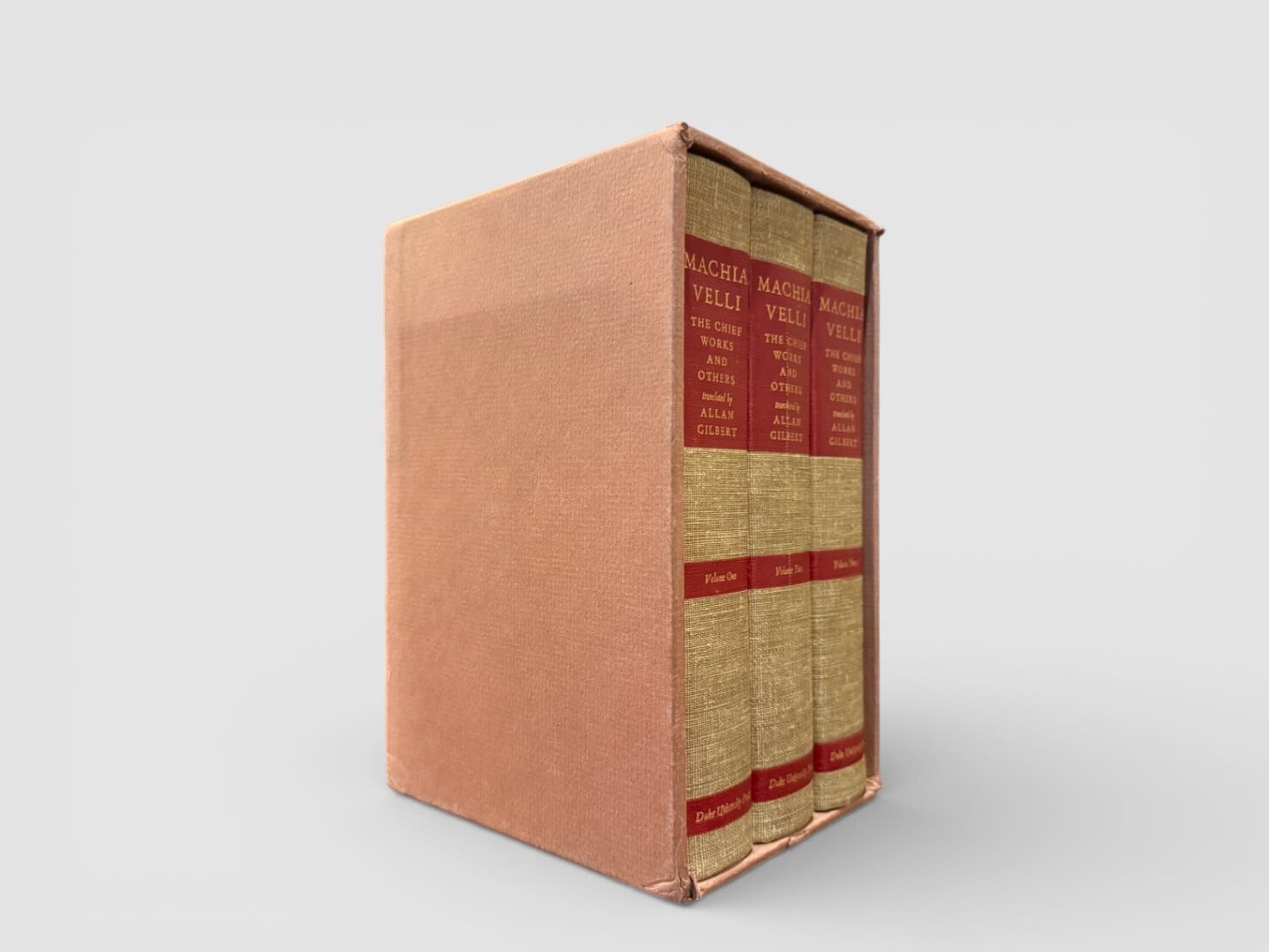 アラン・ギルバートによるマキァヴェッリ主要著作の英訳決定版。スリップケース付き三巻揃。収録作品は『The Prince』『Discourses on the First Decade of Titus Livy』『The History of Florence』『The Art of War』を中心に、書簡、詩、戯曲『Mandragola』『Clizia』等を含む。思想・歴史・軍事論を横断的に参照するための重要なセット。