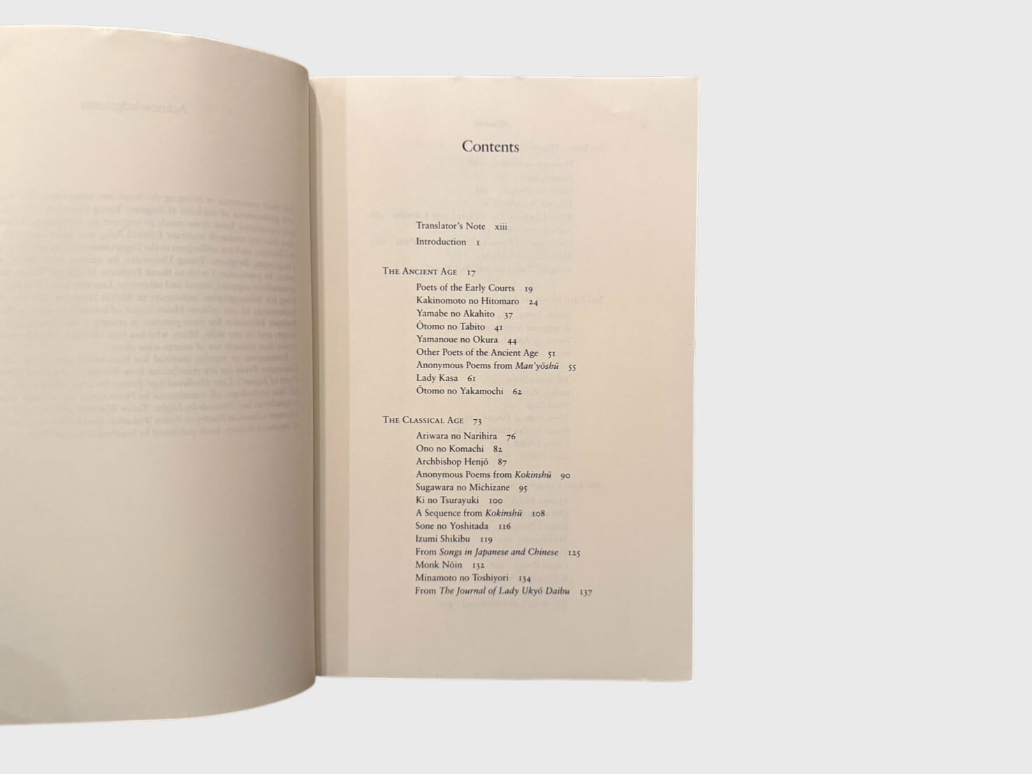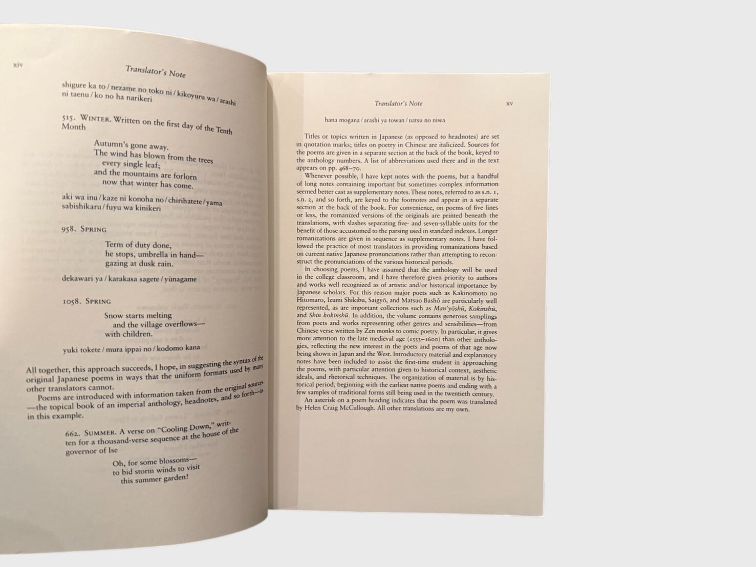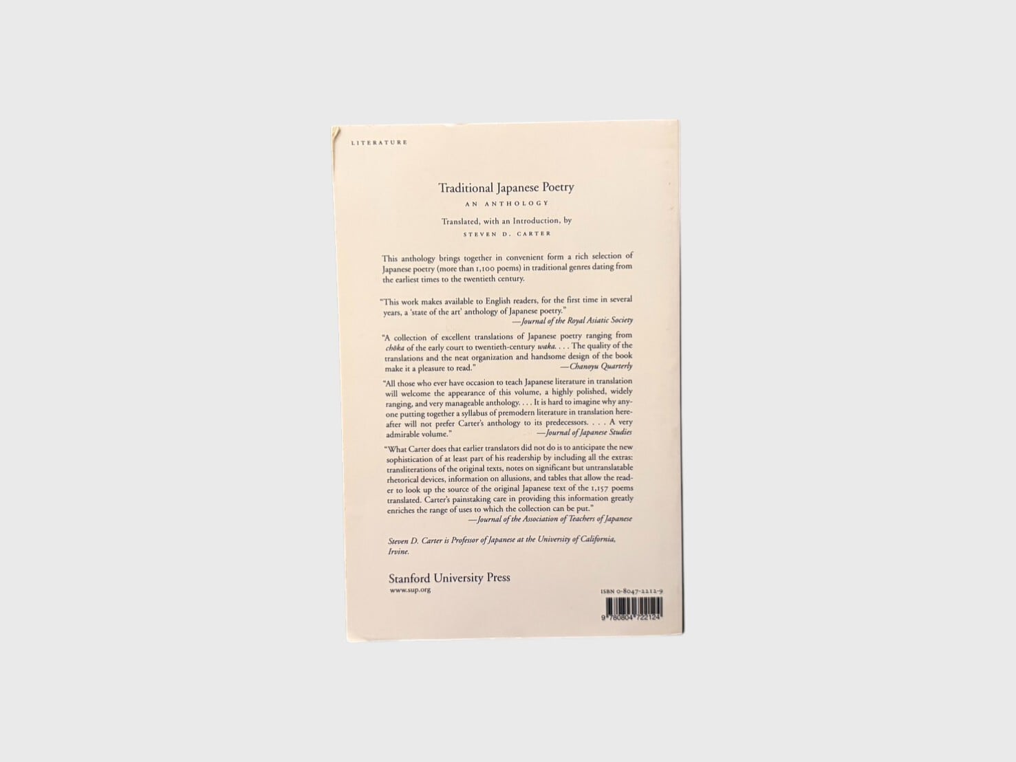 スティーヴン・D・カーターによる、日本古典詩歌の英訳アンソロジー。万葉集から中古・中世和歌、連歌、俳諧、近世俳句、さらに近代の短歌・俳句に至るまでを体系的に収録。英語圏における日本詩歌理解の基礎文献として広く参照されてきた一冊であり、日本文学研究・比較文学研究の場でも用いられている。研究用としても、教育用としても位置づけられる標準的アンソロジーである。