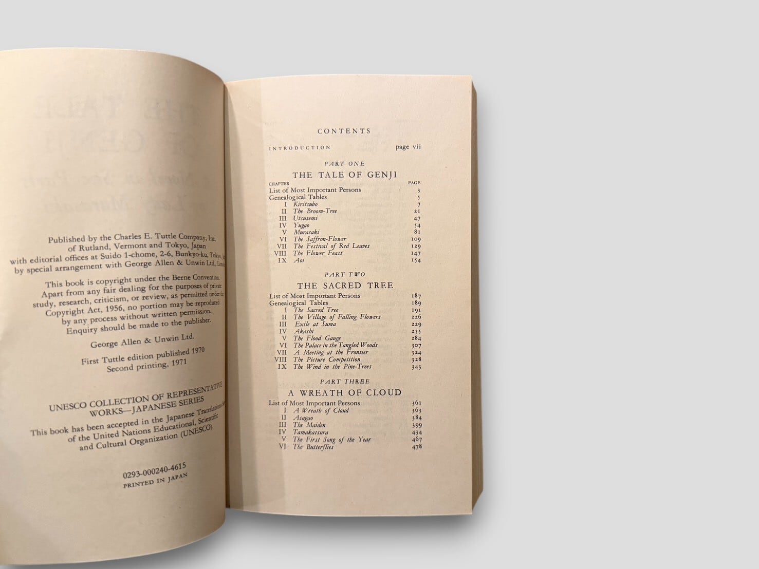 【SJ874】【SECOND TUTTLE PRINTING】The Tale of Genji .Two-volume set in original slipcase.(1971) /Lady Murasaki
