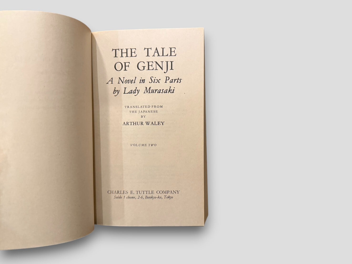 紫式部による平安時代の大長編『源氏物語』を、Arthur Waleyが英語で紹介した20世紀初頭の名訳。Waley訳は要約と再構成を含む文学的抄訳である。しかしその英語表現の美しさと物語構成の巧みさによって、20世紀英語圏における『源氏物語』受容の決定的役割を果たした。本書はUNESCO Collection of Representative Works(Japanese Series)として刊行されたタトル版。1970年刊行のFirst Tuttle editionに基づく1971年Second printing。2巻揃い、スリップケース付。