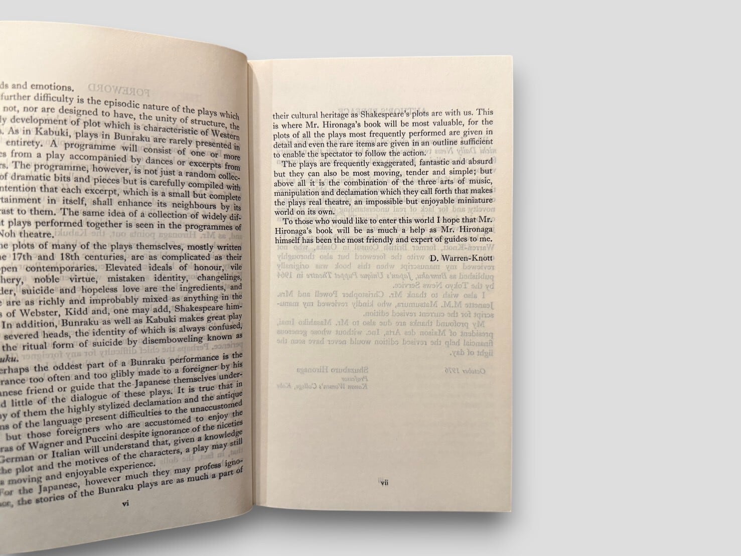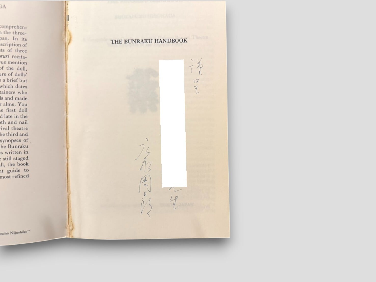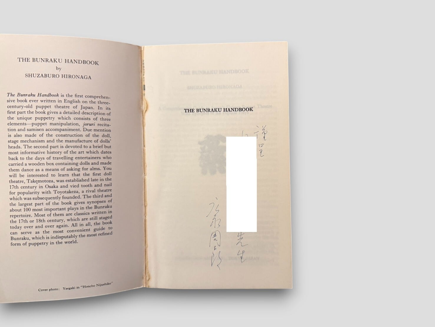 【SJ877】【AUTHOR'S SINGED PRESENTATION COPY】The Bunraku Handbook(1976) /Shuzaburo Hironaga