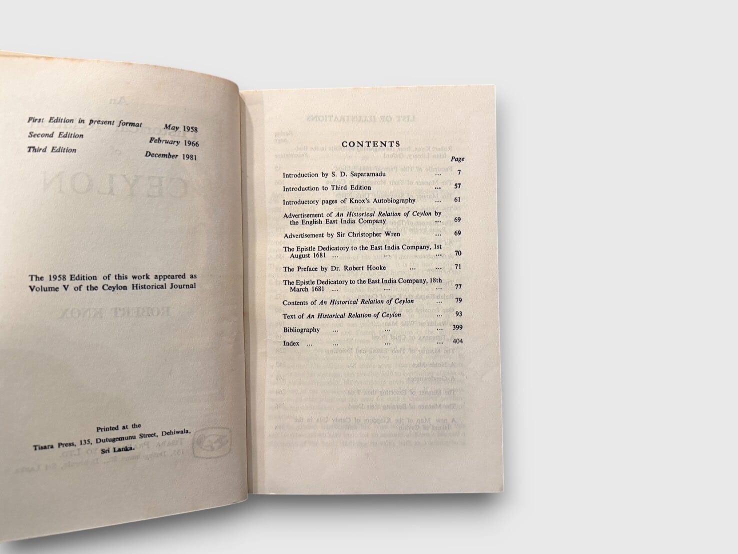 【SH083】【THIRD EDITION】An Historical Relation of Ceylon(1981) /Robert Knox