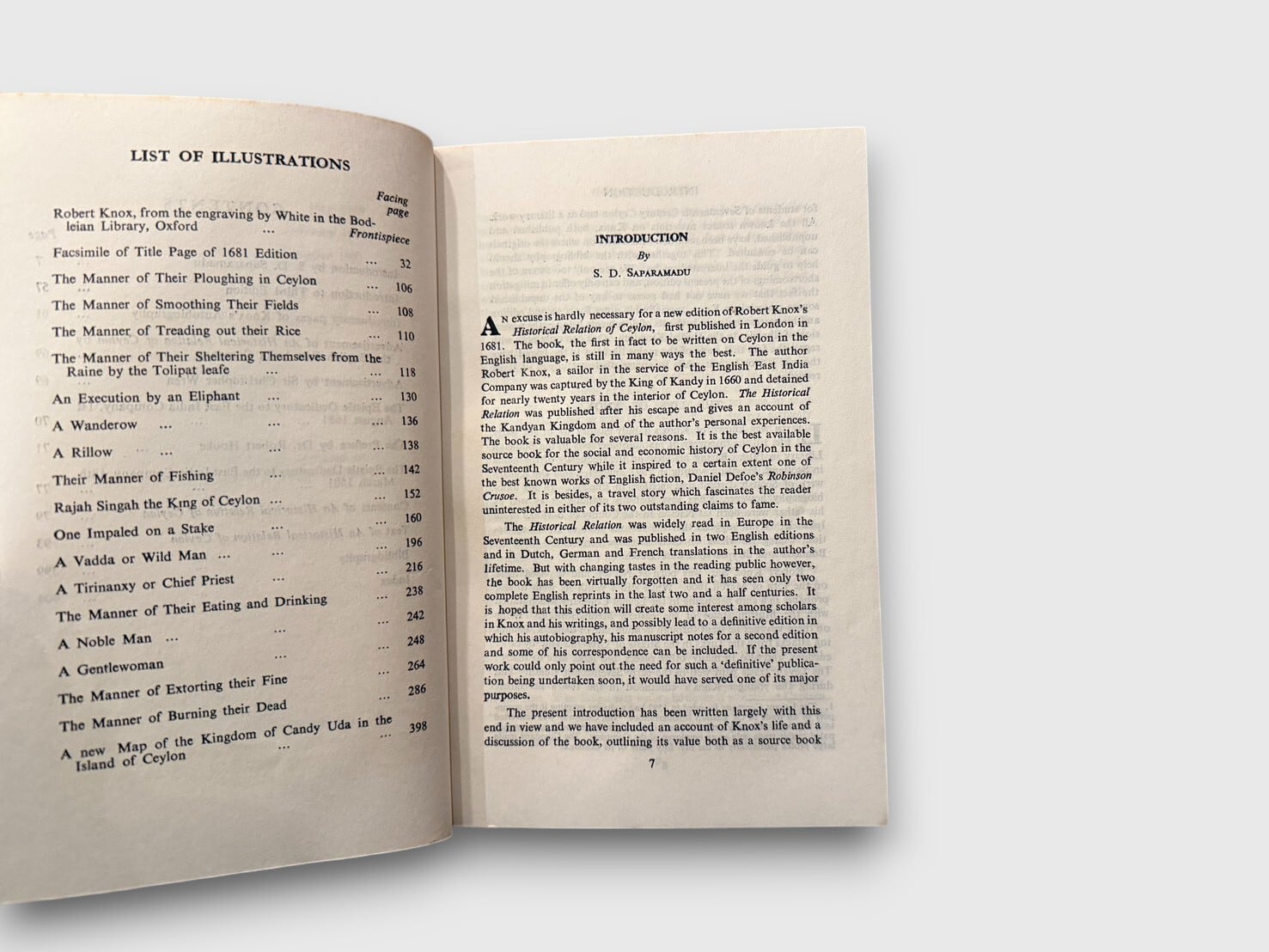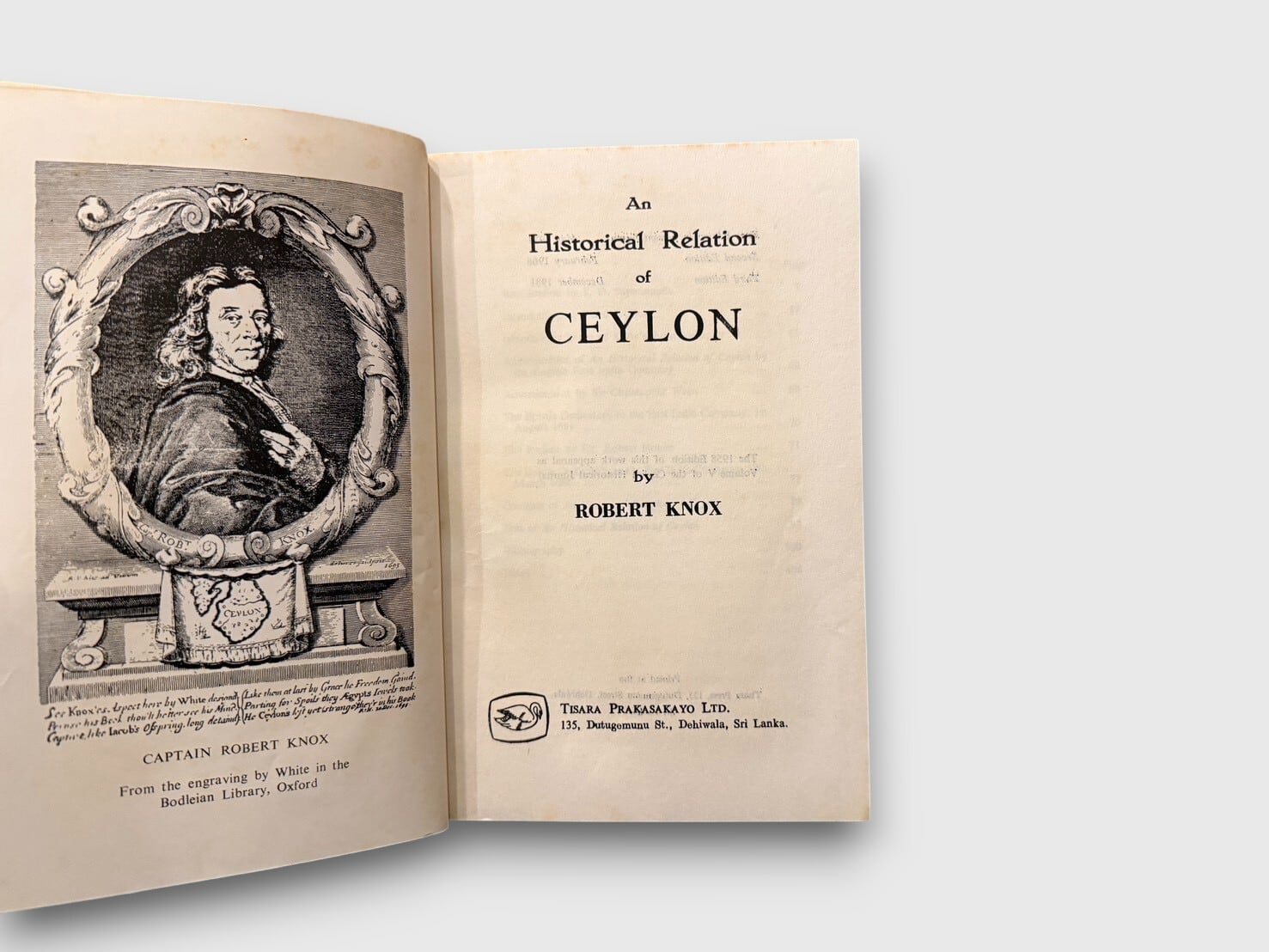 ロバート・ノックスによるセイロン(現スリランカ)滞在記。著者は1660年にキャンディ王国に抑留され、約20年間の滞在経験をもとに本書を執筆した。当時の政治体制、農業、宗教、刑罰、交易、日常生活などを詳細に記述し、17世紀スリランカ史研究において重要な一次史料とされている。ヨーロッパにおけるセイロン理解の基礎文献のひとつでもある。本書は1981年刊行のThird Edition。