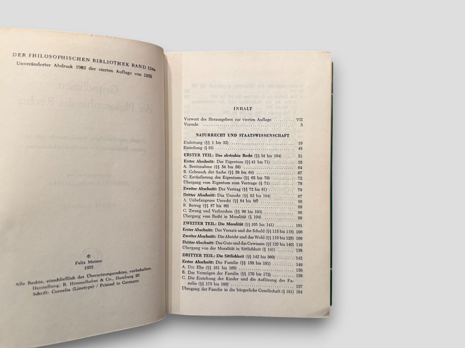【SFF226】Grundlinien der Philosophie des Rechts(1962) /Georg Wilhelm Friedrich Hegel