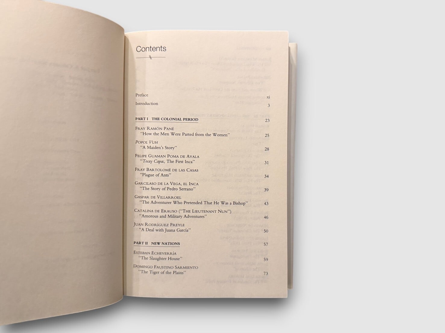 ラテンアメリカ文学の短編を歴史的視点から編んだアンソロジー。植民地期から20世紀後半までを三部構成で収録し、Jorge Luis Borges、Julio Cortazar、Gabriel Garcia Marquez、Mario Vargas Llosa ほか、多様な作家の作品を含む。