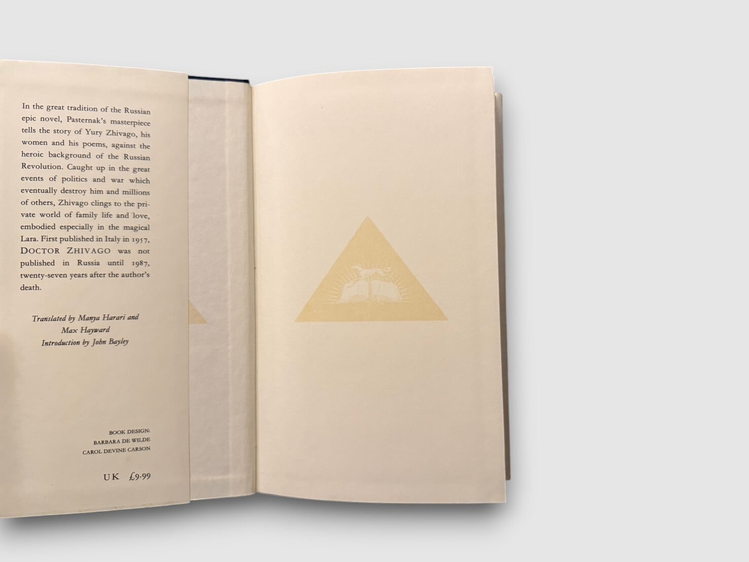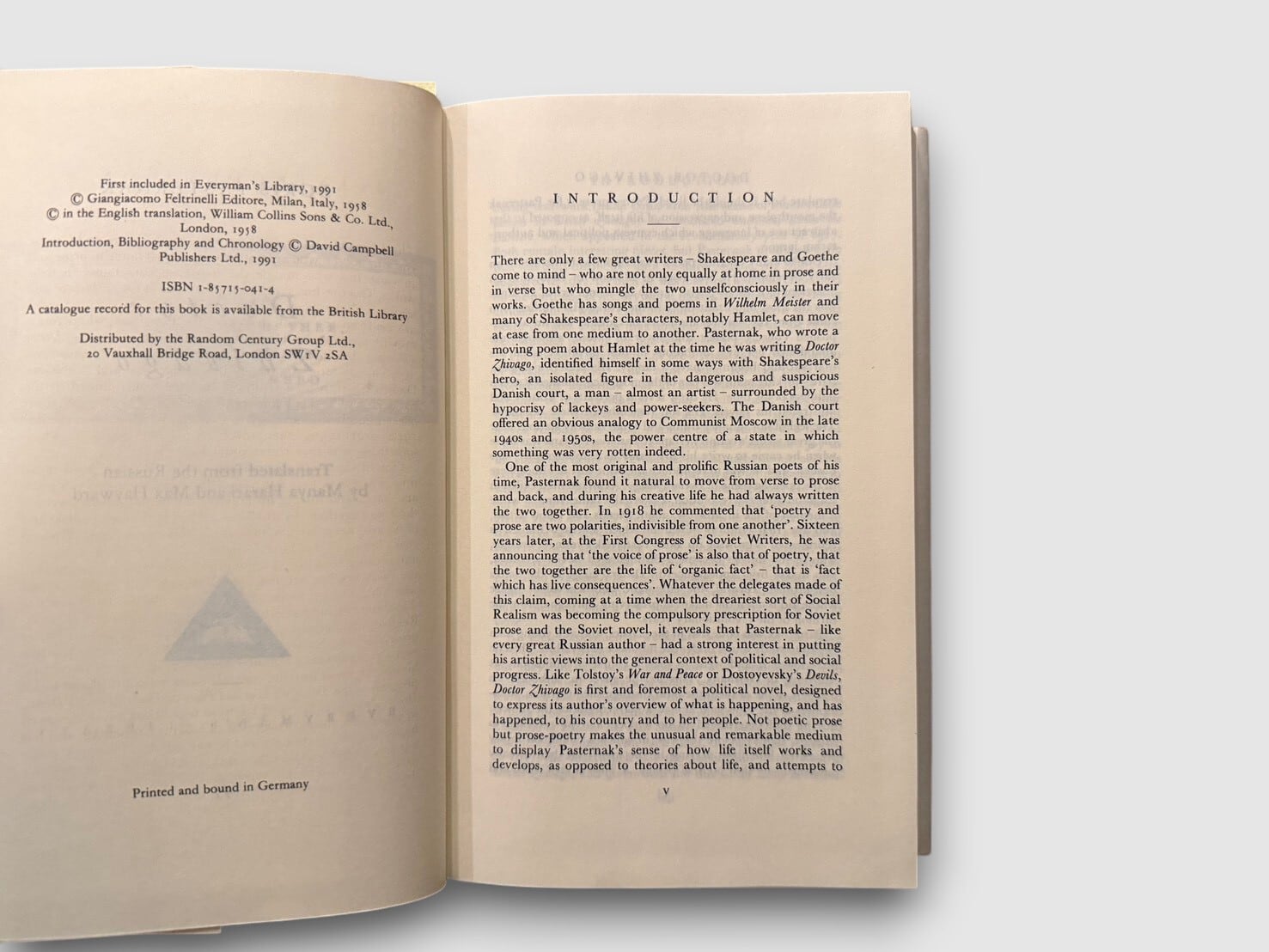 本書は1991年にEveryman's Libraryに収録された版。英訳は1958年にWilliam Collins Sons & Co. Ltd(London)より刊行されたManya Harari と Max Haywardによる訳文を底本とする。序文はJohn Bayley。