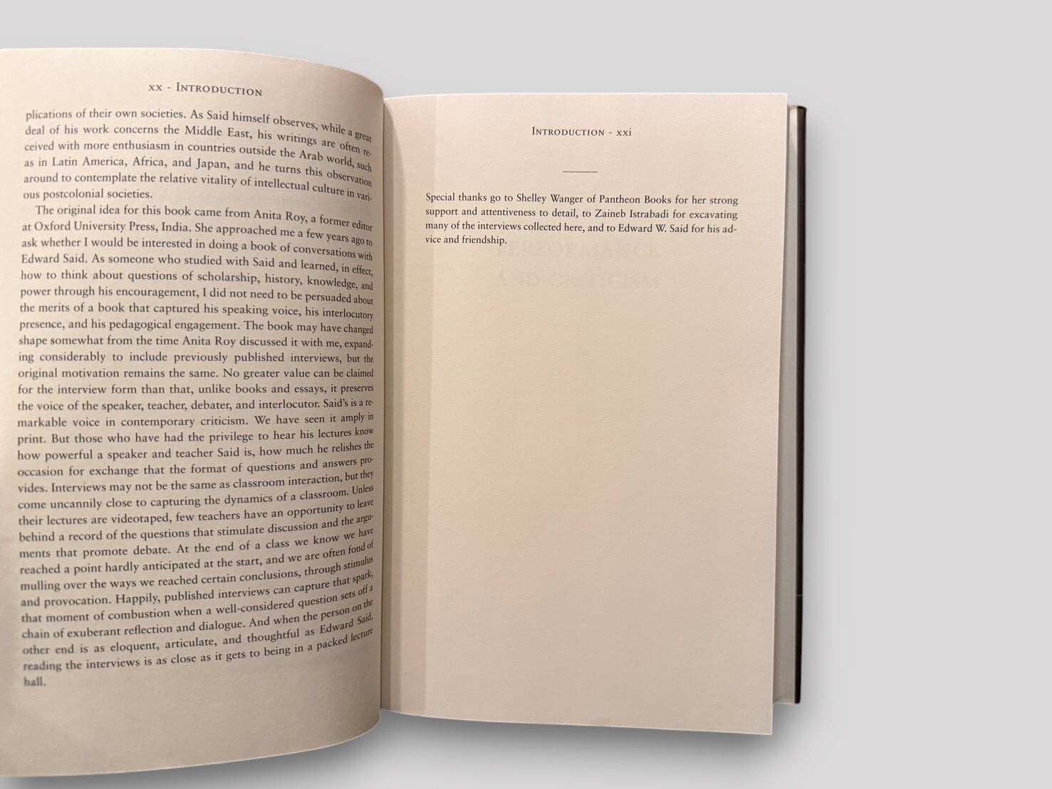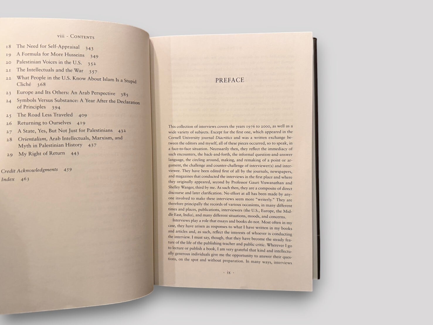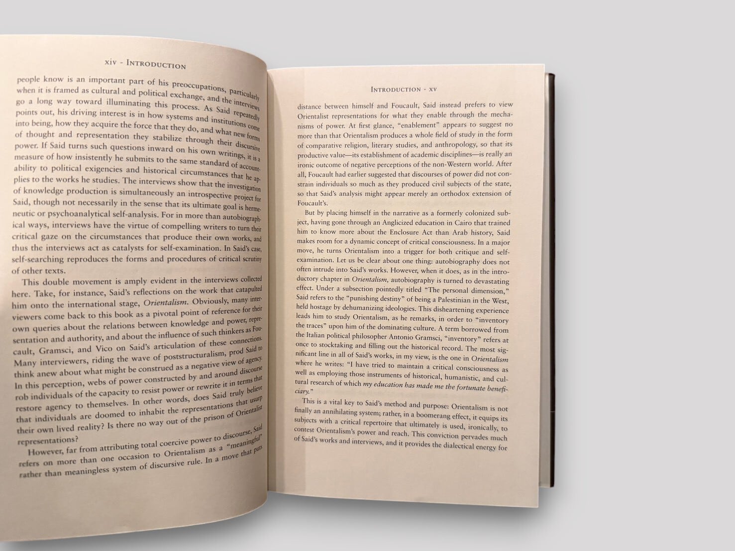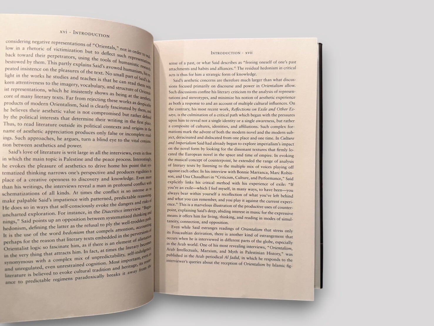 パレスチナ系アメリカ人の批評家・思想家エドワード・W・サイードによるインタビュー集。本書は1976年から2000年にかけて行われた28本の対話を収録し、文学批評から音楽論、政治、パレスチナ問題、知識人の責任に至るまで、サイードの思考の軌跡を立体的に示している。理論の解説書ではなく、理論がどのように現実の歴史や政治と結びつき、応答し続けるのかを示す記録書という印象。批評とは何か。知識人はどこに立つのか。その問いが、静かに、しかし一貫して通底している一冊である。2001年刊行初版。