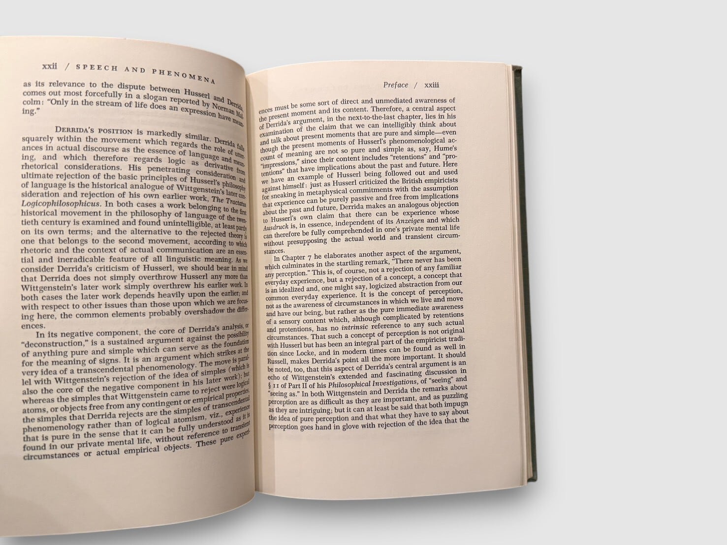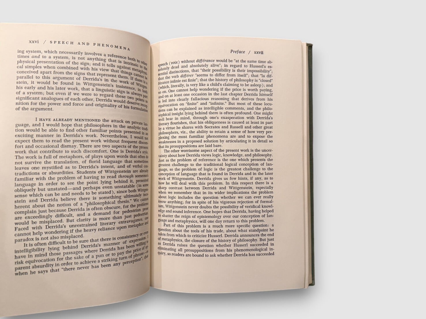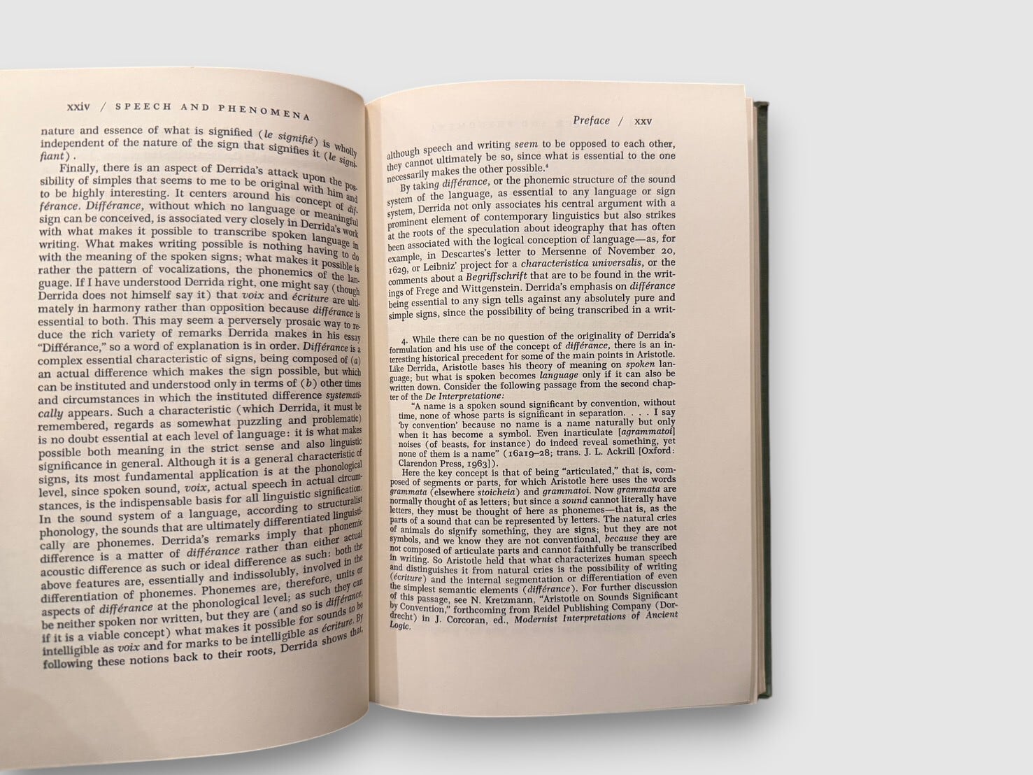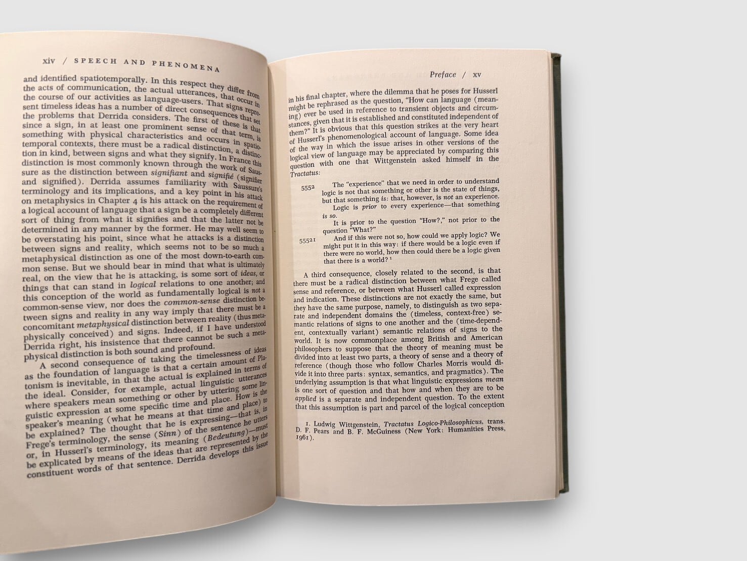 フランスの哲学者ジャック・デリダによる、フッサール現象学を扱った初期著作の英語版初版(原著 La Voix et le Phénomène)。フッサールの記号論および意味理論を精読し、「声」「現前」「意味」「差延」の問題を検討する。