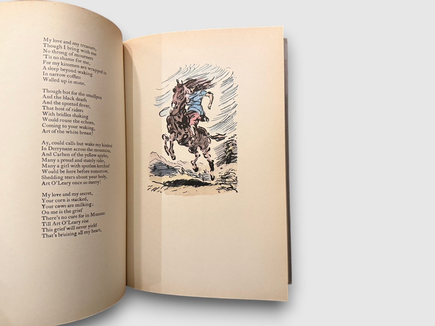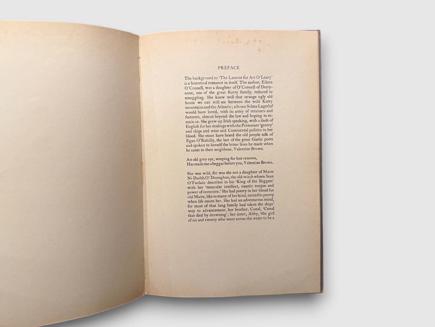 18世紀アイルランド語による伝承詩「A Lament for Art O'Leary」のアイルランドの作家、フランク・オコナーによる英訳版。本書は1940年に The Cuala Press(Dublin)より刊行された版を、1971年に Irish University Press(Shannon)が photo-lithography により再刊したもの。挿絵6点を収録。