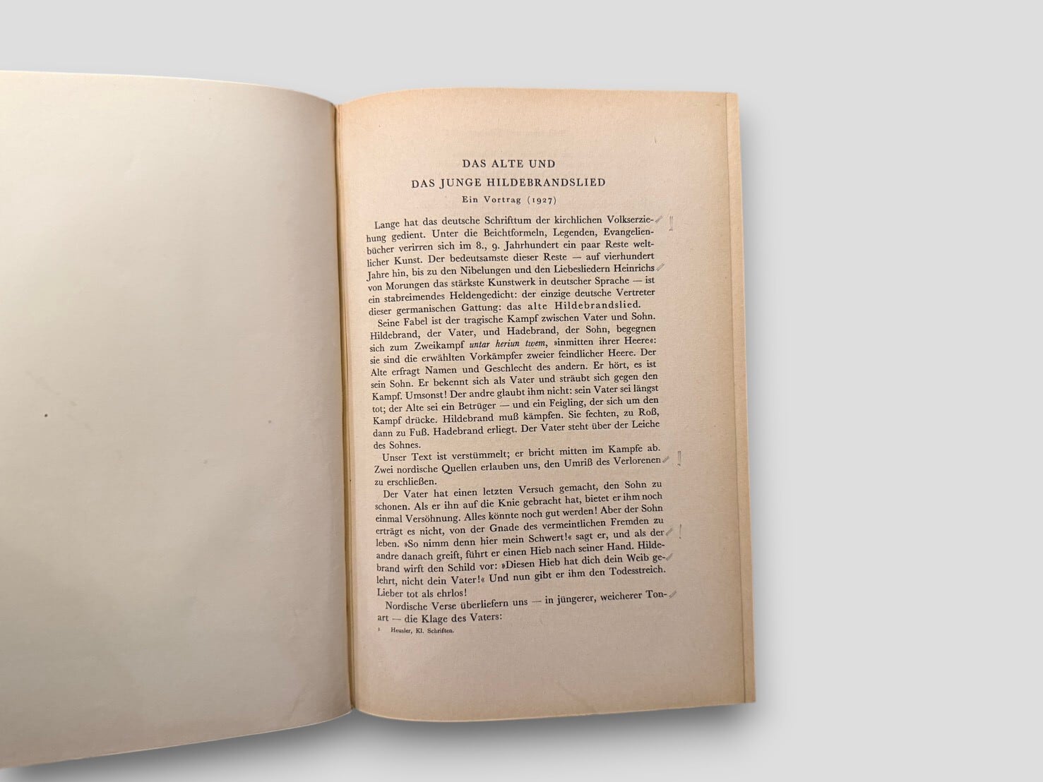 ゲルマン文学研究、とりわけ古ノルド文学研究において決定的な位置を占める学者である、アンドレアス・ホイスラーの講演・論文・研究を集成した遺稿集。ドイツ英雄叙事詩および北欧サガ研究に関する重要論考が収録されている。第二次世界大戦下のベルリンで刊行された学術書であり、当時のドイツ語圏文献学の到達点を示す一冊である。1943年刊行初版。