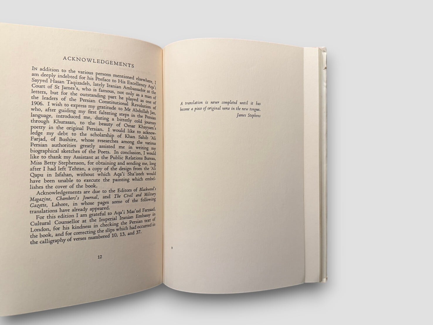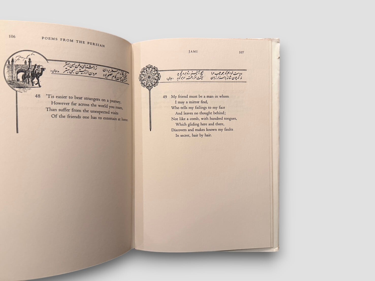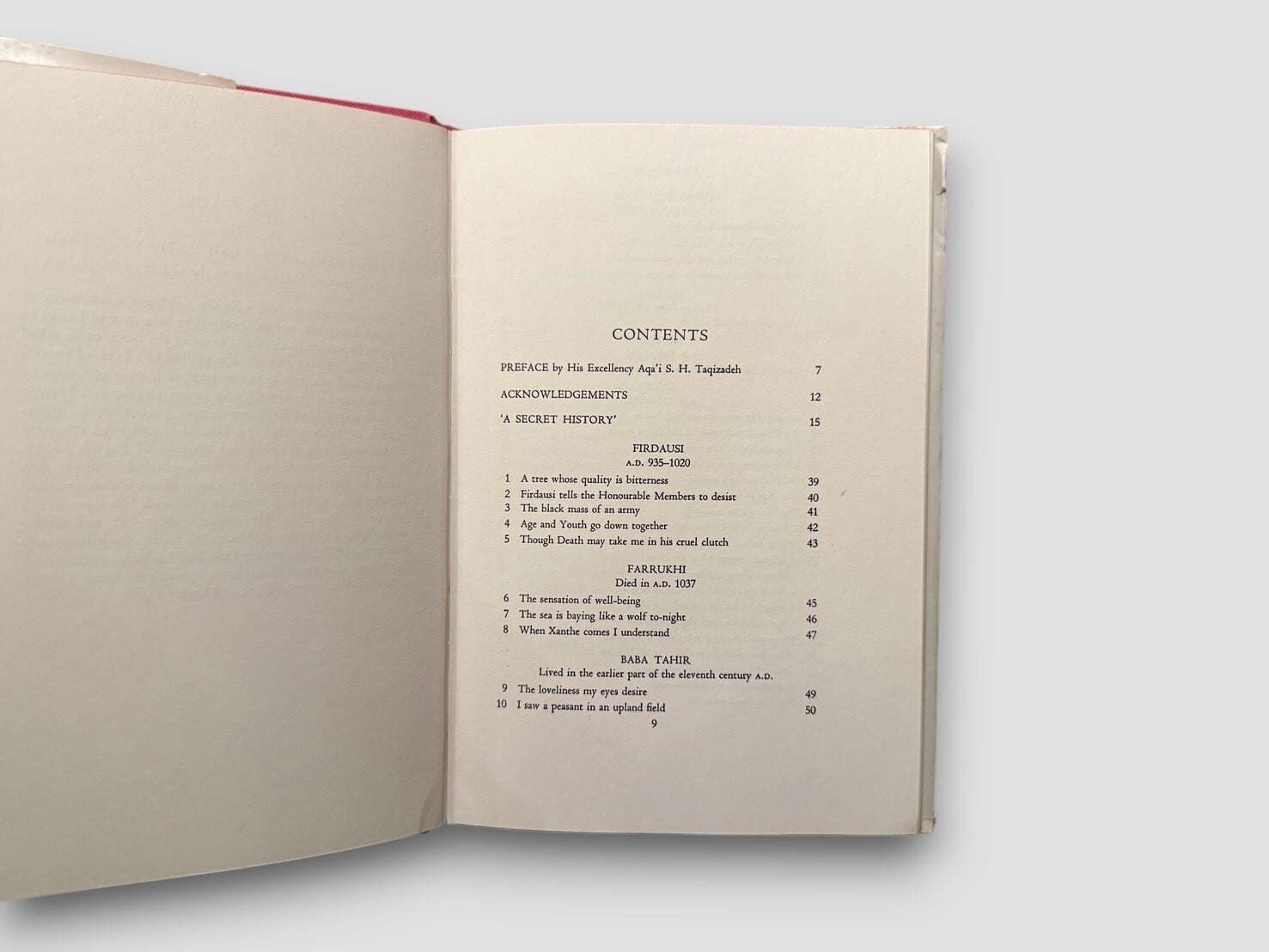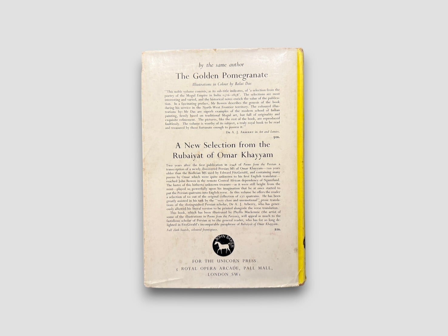 イギリスの作家・翻訳者 John Charles Edward Bowen による、ペルシア詩の英訳アンソロジー。東洋趣味の装丁とカラー口絵を備えた版であり、20世紀中頃の英語圏におけるペルシア詩受容の一端を示す出版物。