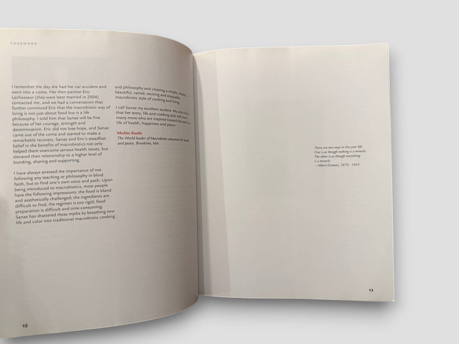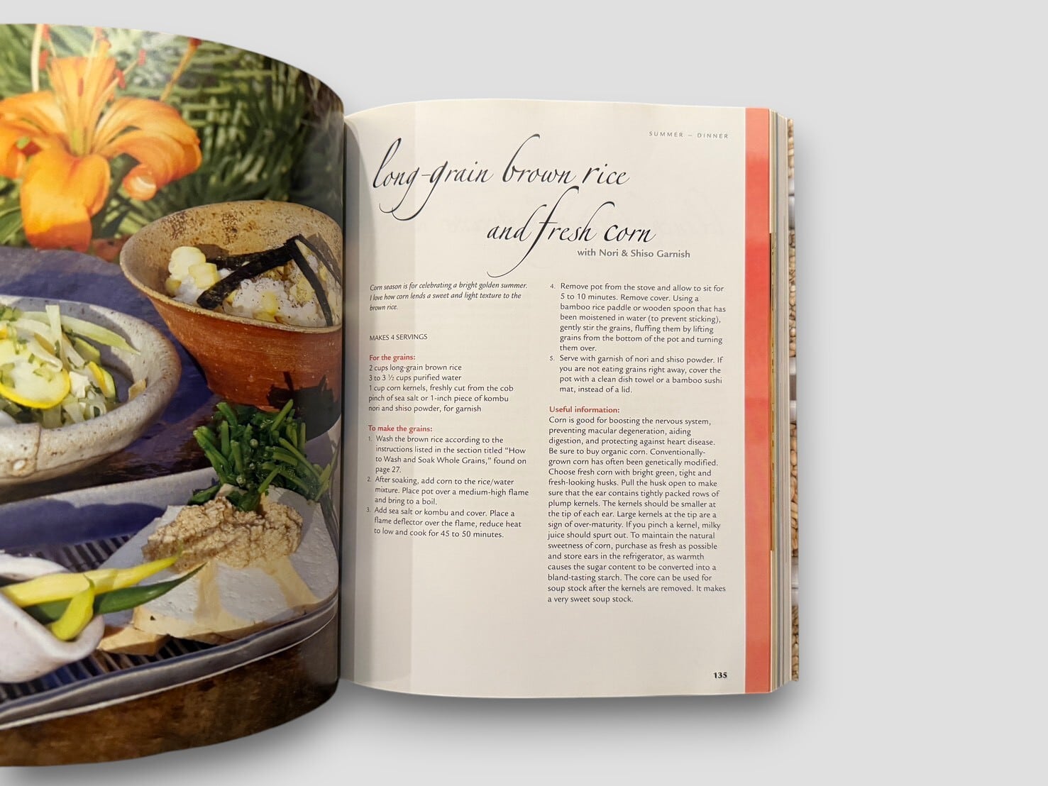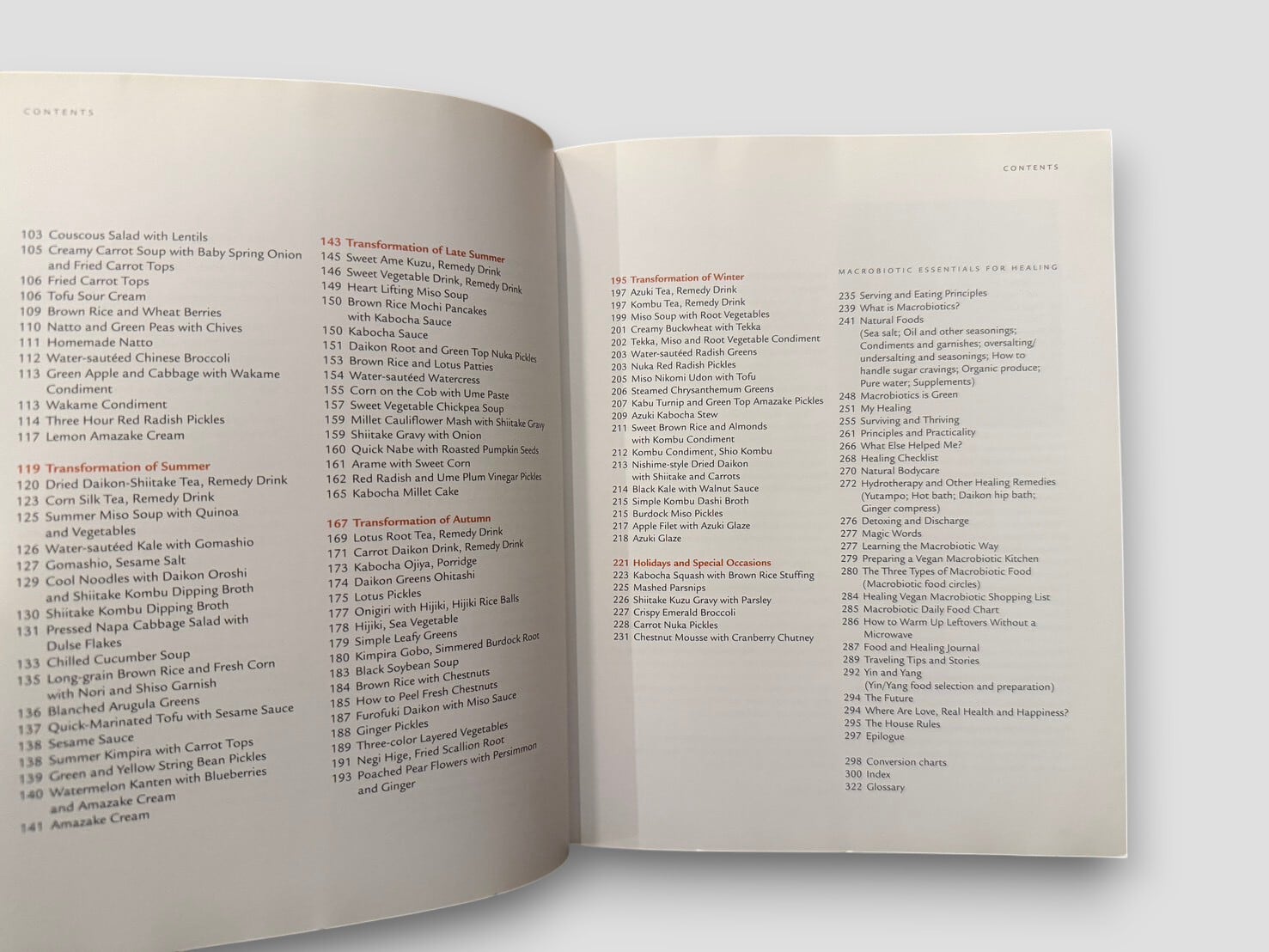 内容はレシピ集としての側面と、自身の人生を振り返る叙述とが並行して構成されており、単なる料理書にとどまらない構造をもつ。穀物、野菜、発酵食品などを中心とした料理は、実践的でありながら思想的背景とも結びついている。