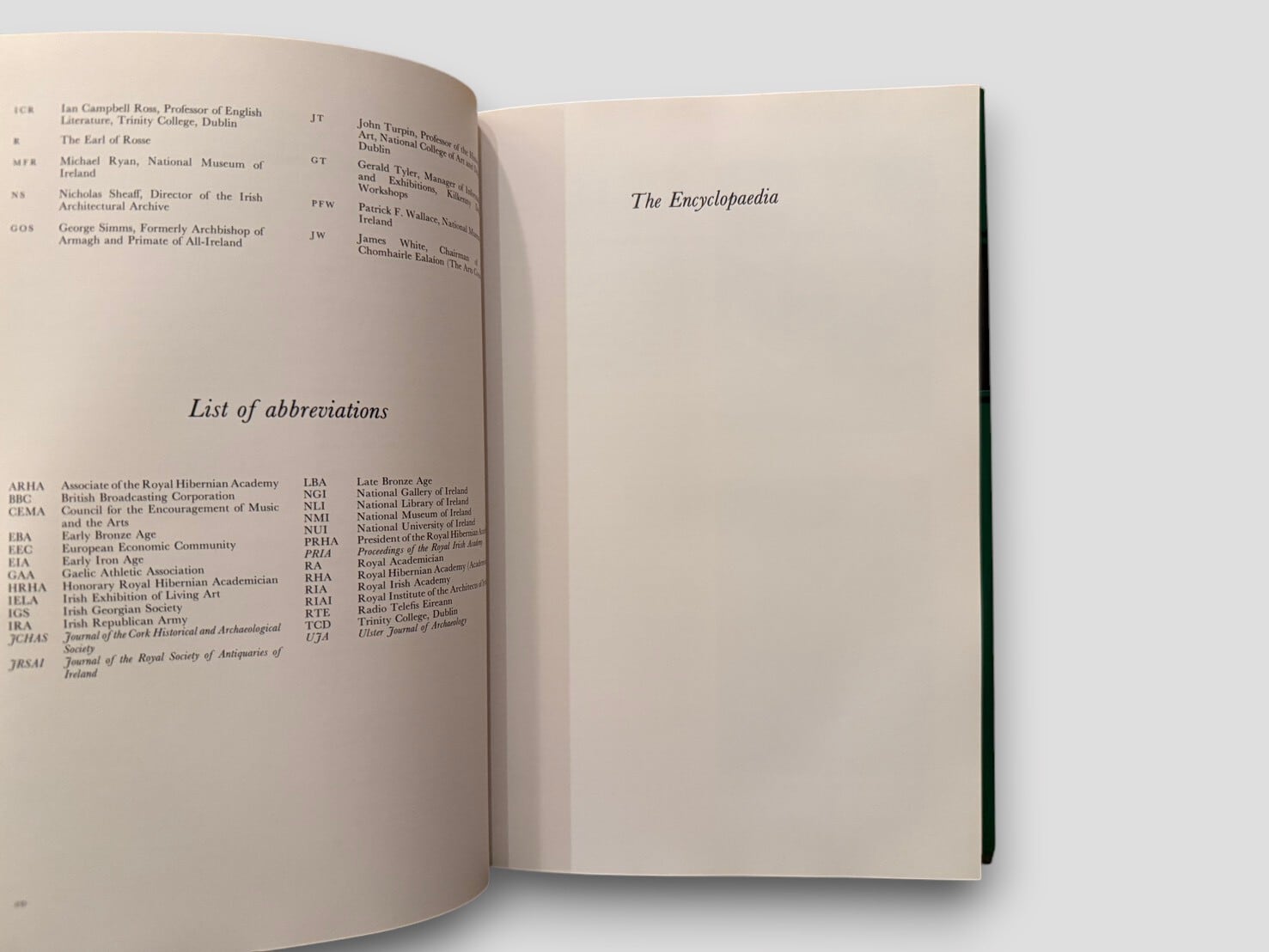 A cultural encyclopaedia covering literature, arts, architecture, religion, and social life in Ireland. It presents over 600 entries arranged alphabetically across a wide range of subjects. The volume includes illustrations and an index.