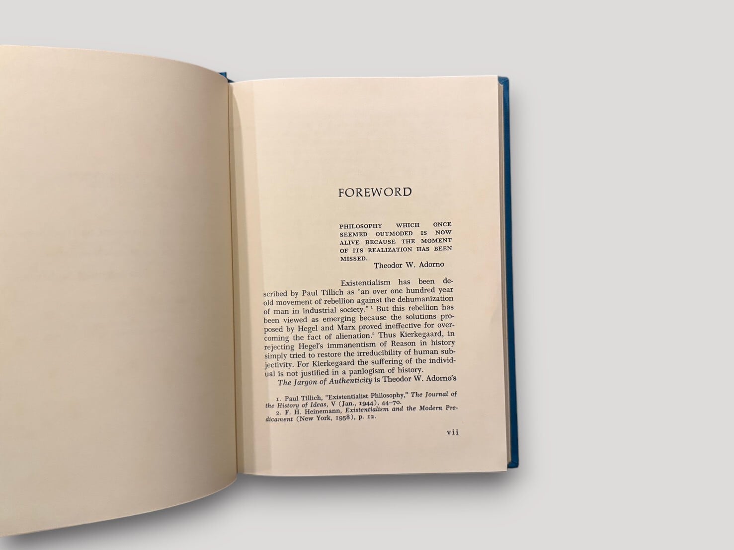 A philosophical work examining the language of authenticity in German existentialism. It analyzes the use of key terms and their relation to social and historical conditions. The volume includes a foreword, author's note, and the main essay.