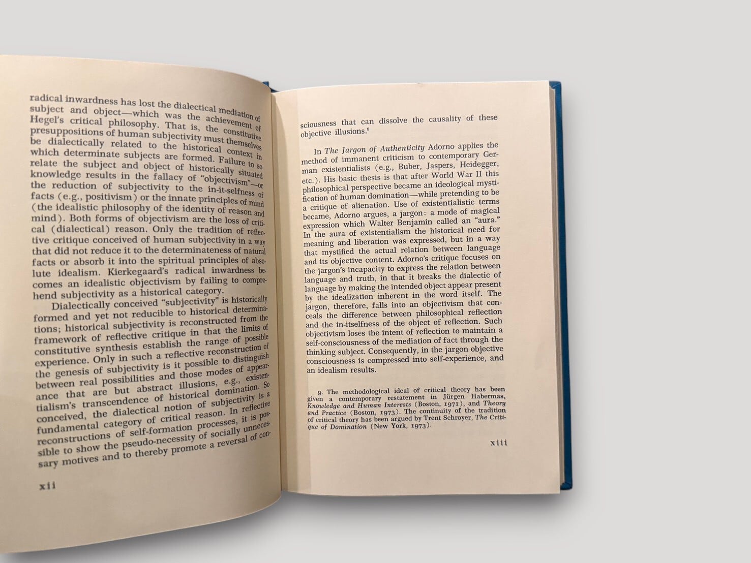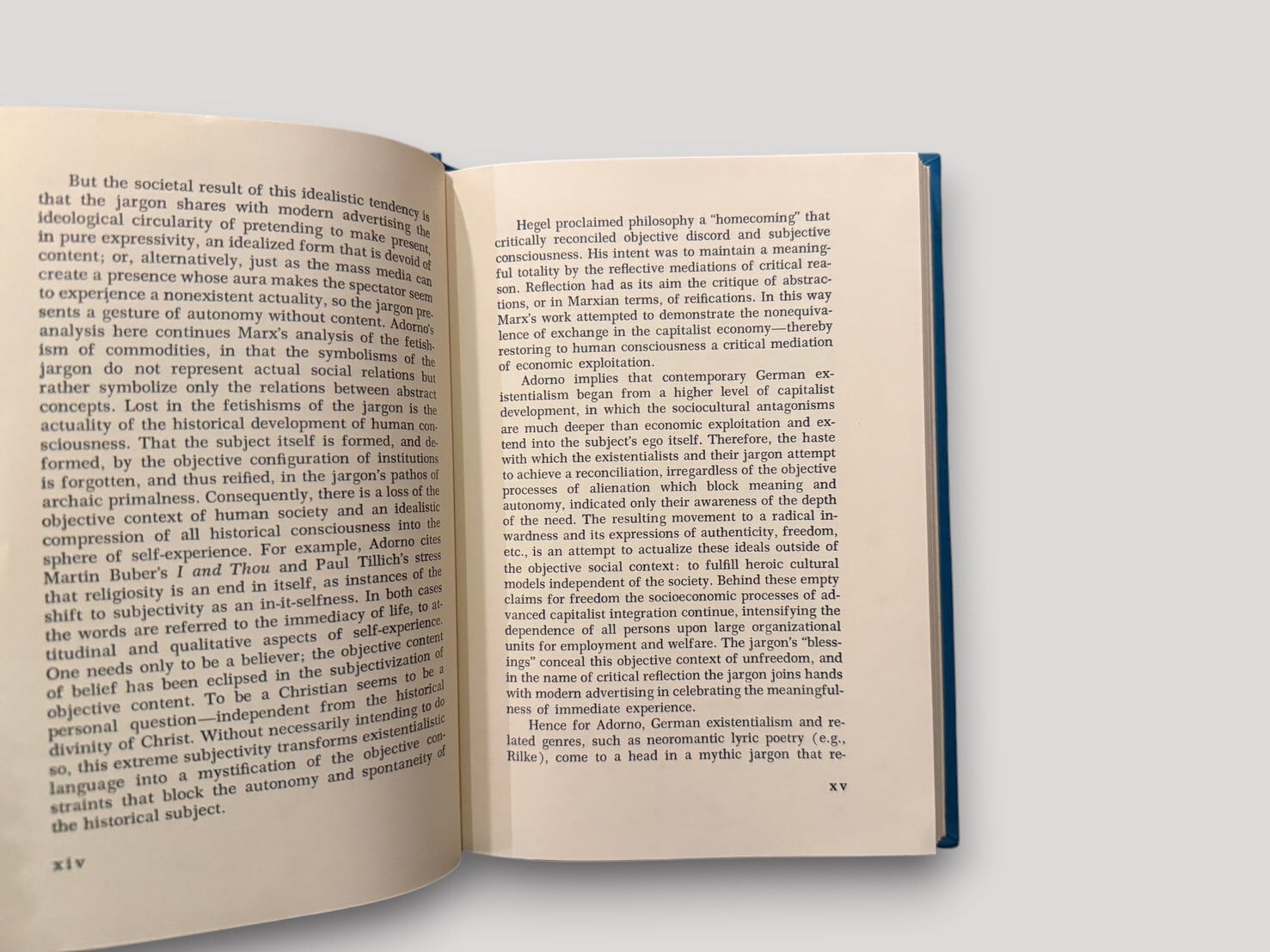 本書は、ハイデガーやヤスパースに代表されるドイツ実存主義において用いられる「真正性(Eigentlichkeit)」という概念とその言語を対象に、その思想的構造と社会的機能を批判的に分析する。アドルノは、この言語が個人の内面性や主体性を強調しながらも、実際には社会的現実や歴史的条件を覆い隠す働きを持つと指摘する。内容は主に実存主義の言語分析とイデオロギー批判を中心に構成され、戦後ドイツ思想の文脈における批判理論の位置づけを示すものとなっている。序文や注を含め、議論の展開はテクスト分析に基づいて進められる。実存主義的語彙の内部に潜む社会的意味を問い直す、批判理論の一書である。英訳版。