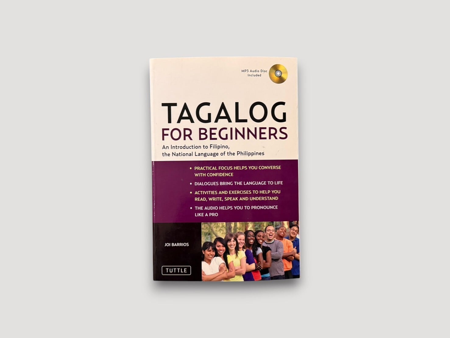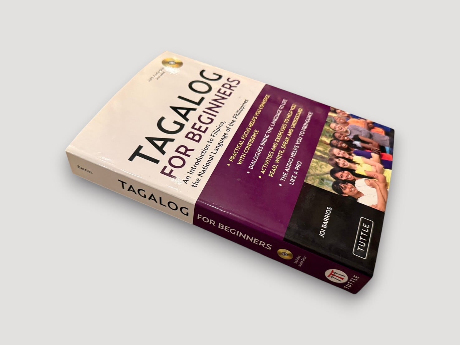 An introductory textbook for learning Tagalog (Filipino) by Joi Barrios. It presents grammar, vocabulary, and everyday dialogues through structured lessons. This is a 2011 first edition including an MP3 audio disc (not tested).
