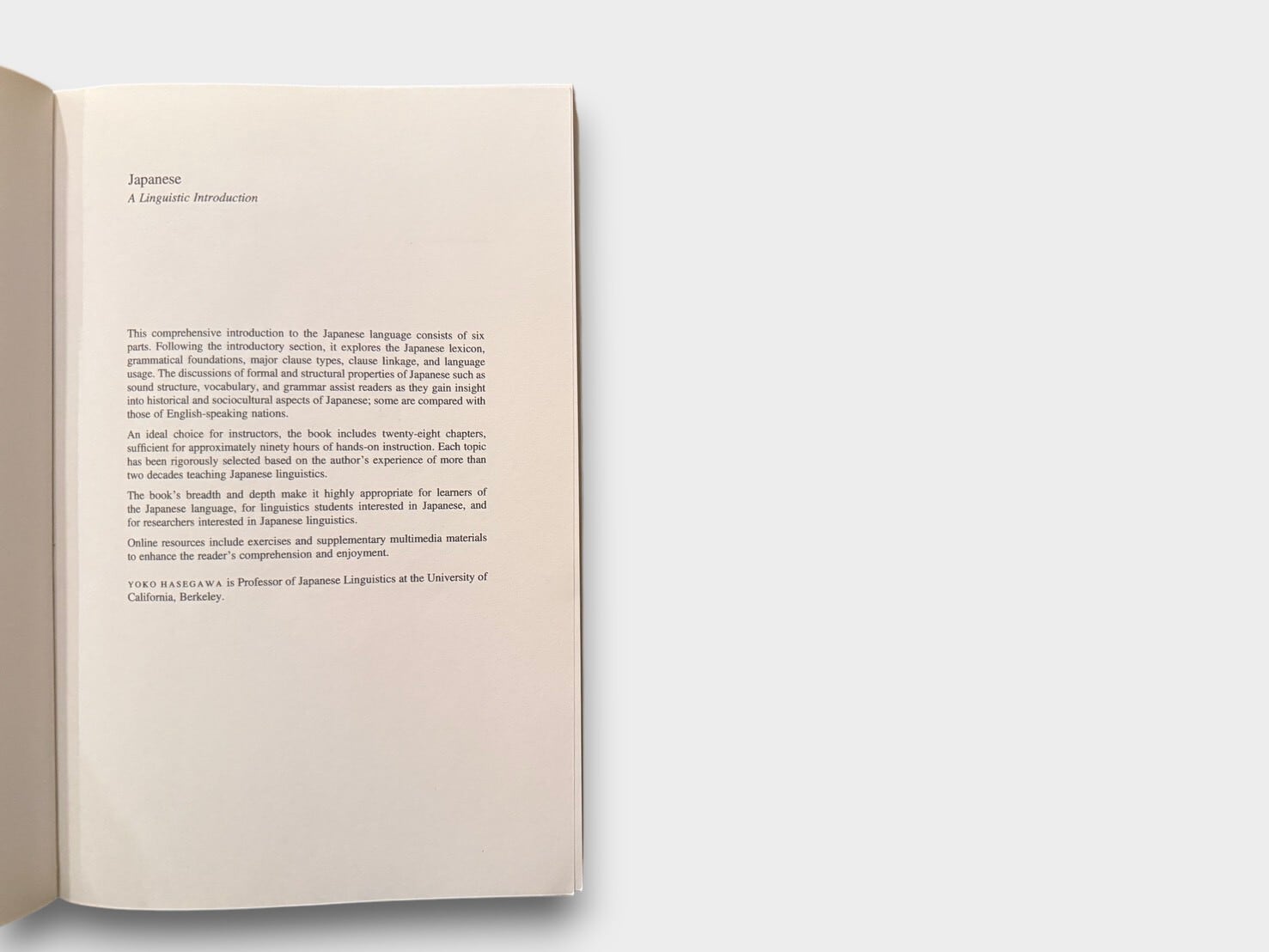 【SG212】【FIRST EDITION】Japanese: A Linguistic Introduction(2015) /Yoko Hasegawa