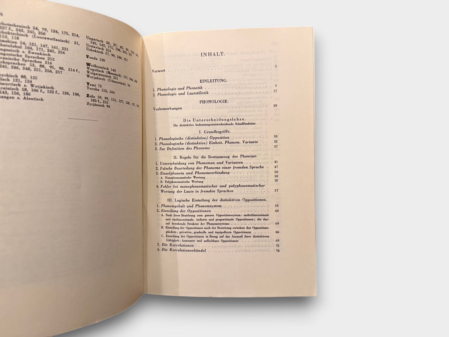 A major work in phonology presenting the concept of phonemes as functional units within a linguistic system. It discusses oppositions, distinctive features, and phonological structure within the Prague School framework. The book includes systematic analyses of phonological relations and combinations.