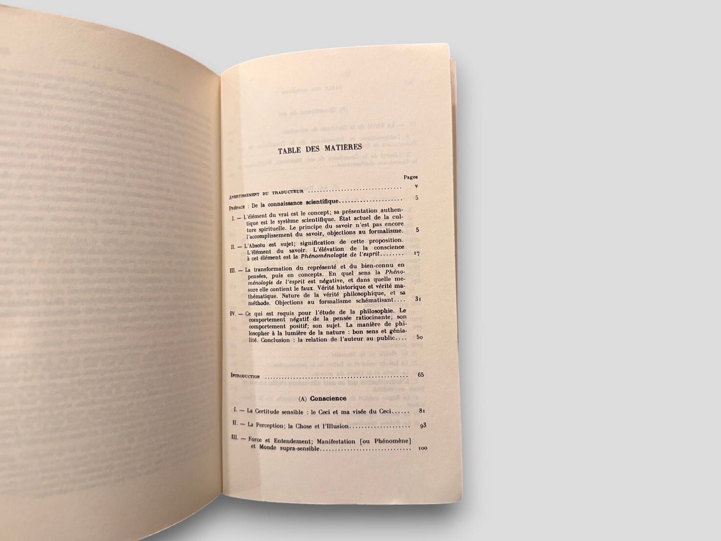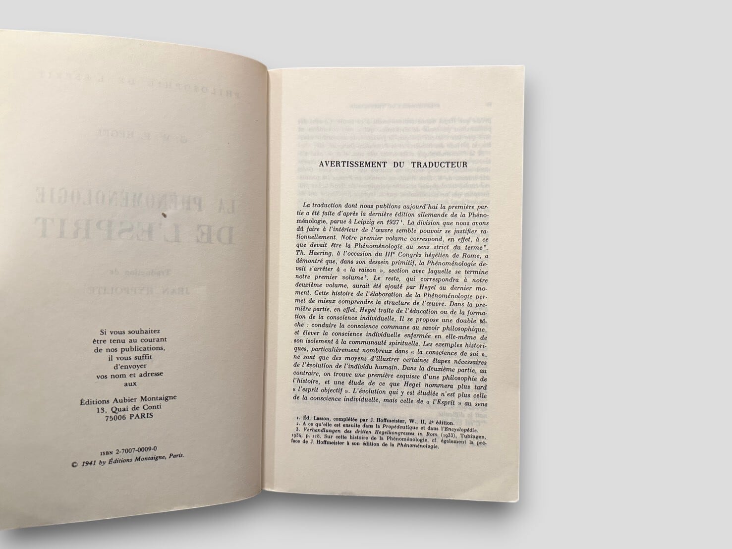 ドイツ観念論の中心人物であるヘーゲルによる主著『精神現象学』を、フランス哲学に決定的な影響を与えたジャン・イポリットが仏訳した版の第1巻。