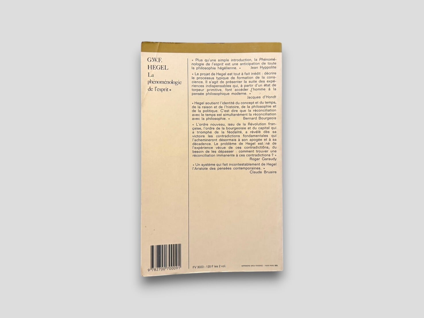 『精神現象学』は、人間の意識が感覚的な確信から自己意識、理性、精神へと至る過程を辿る哲学的叙述であり、近代哲学の中でも特に構造的かつ生成的な思考の軌跡を示した作品として知られる。イポリット訳は単なる翻訳にとどまらず、フランスにおけるヘーゲル受容の基盤を築いた重要なテクストであり、サルトルやメルロ=ポンティをはじめとする20世紀思想への橋渡しとなった。本書もまた、その文脈の中で読み継がれてきた一冊である。