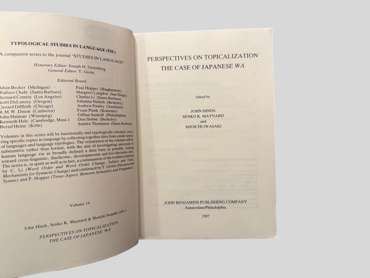 【SG216】【FIRST EDITION】Perspectives on Topicalization: The Case of Japanese "Wa"(1987) /John Hinds ,Senko K. Maynard ,Shoichi Iwasaki