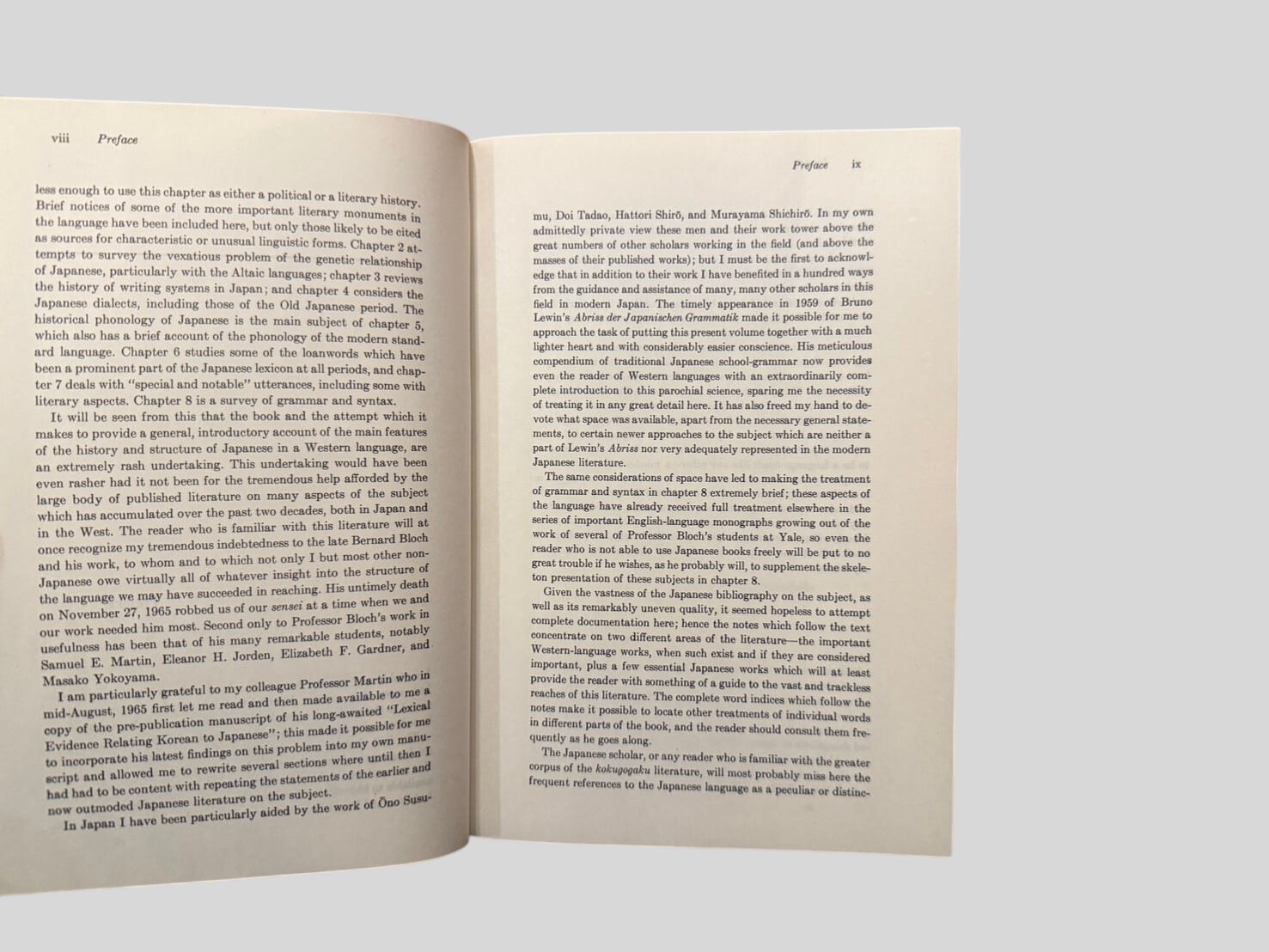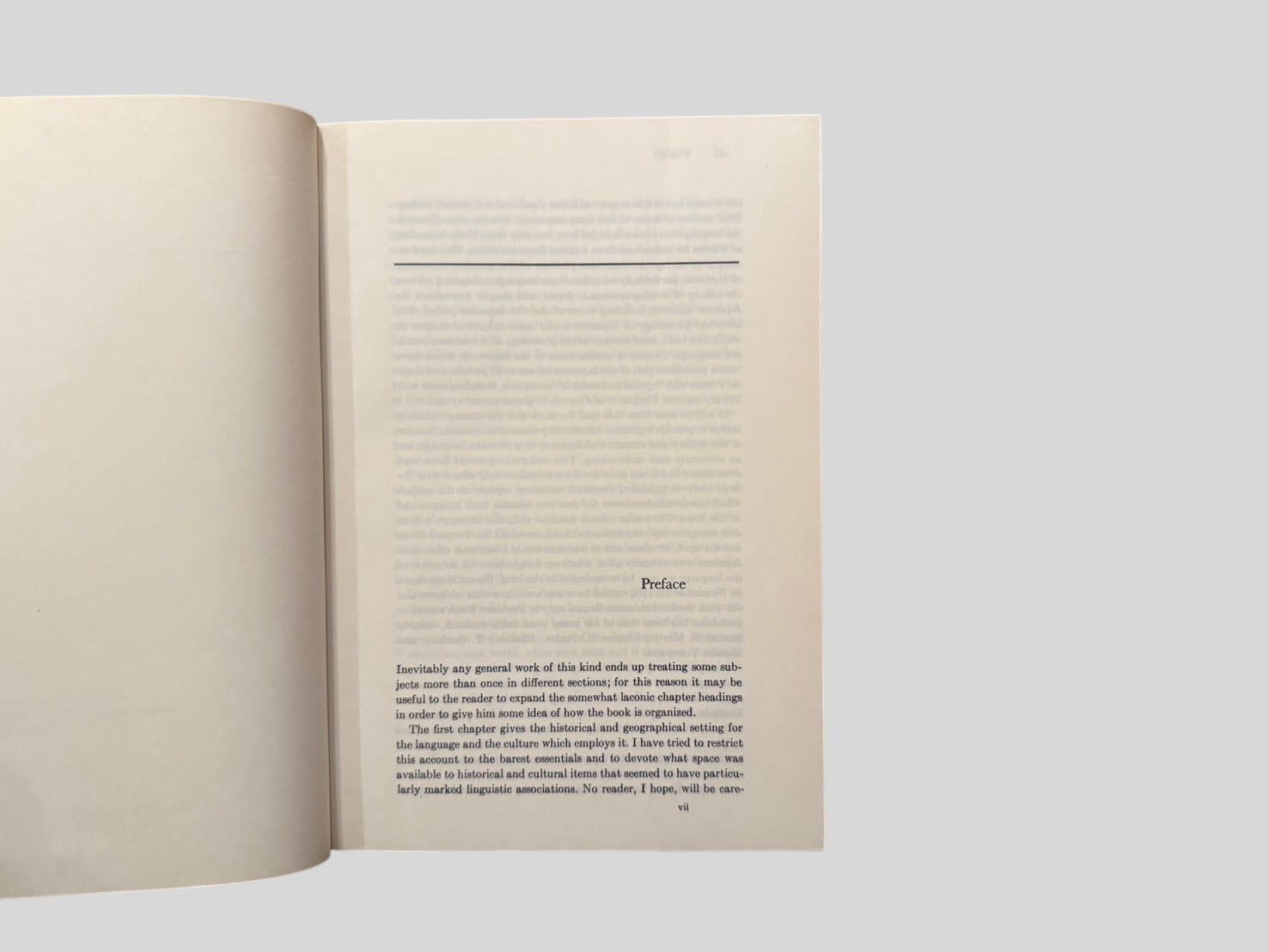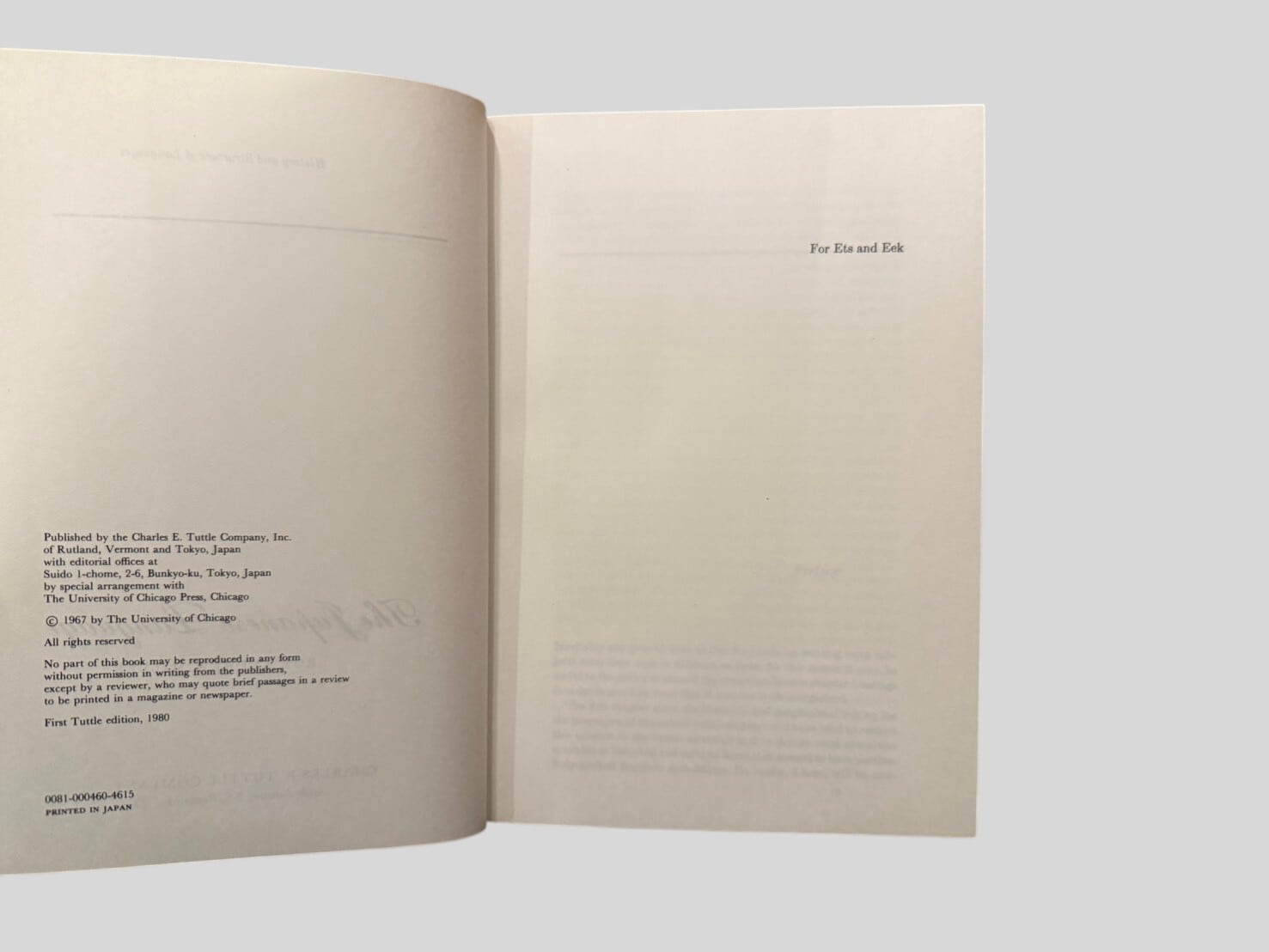 日本語をどのような言語として捉えるかという視点を示した著作。本書は、日本語の系統関係、音韻、文法、語彙、方言といった諸側面を扱いながら、日本語を広い言語史および言語類型の中で捉えることを試みる。言語の歴史的背景、遺伝的関係(genetic relationship)、表記体系、方言分布、音韻構造などが順に論じられ、個別言語の記述にとどまらず、日本語の位置づけそのものを問い直す構成となっている。入門書というよりは、日本語という言語をどのように理解するか、その前提を提示する著作といえるだろう。巻末図版収録。1980年刊行タトル社版初版。オリジナルスリップケース付き。