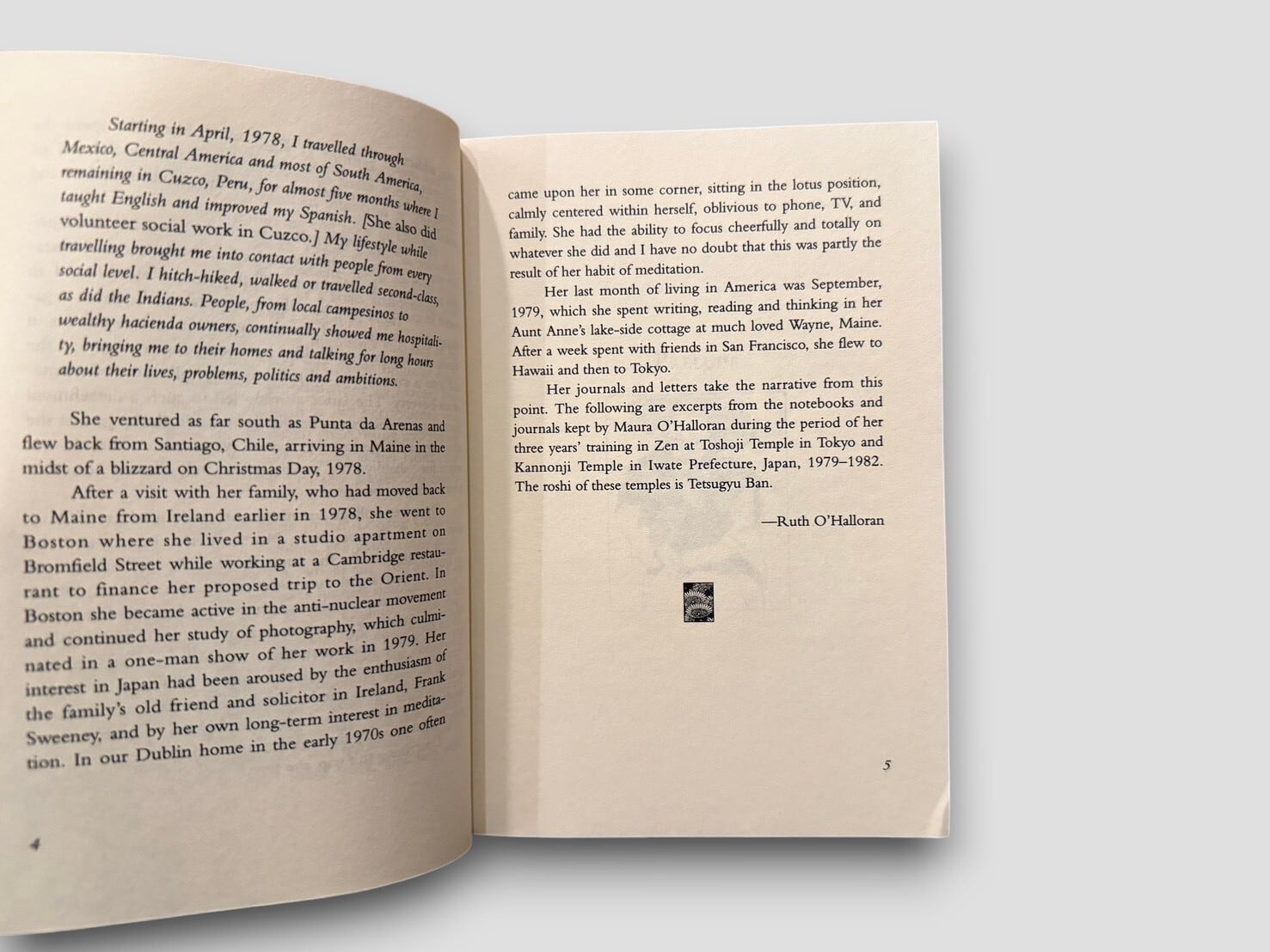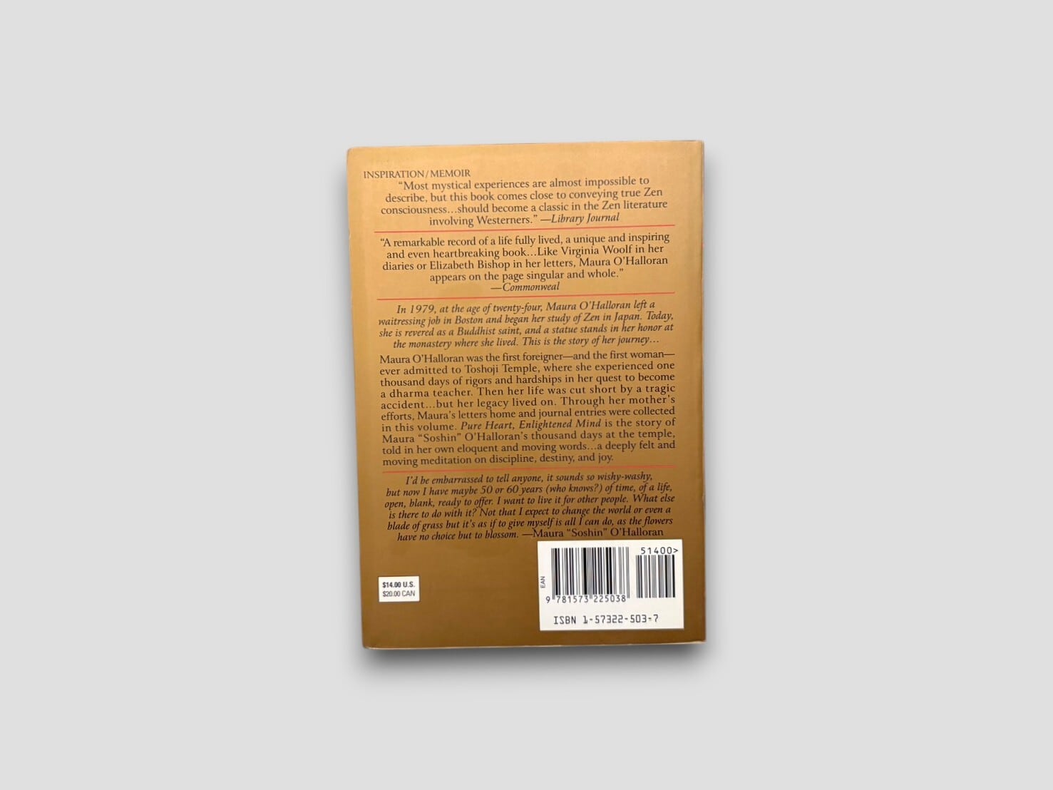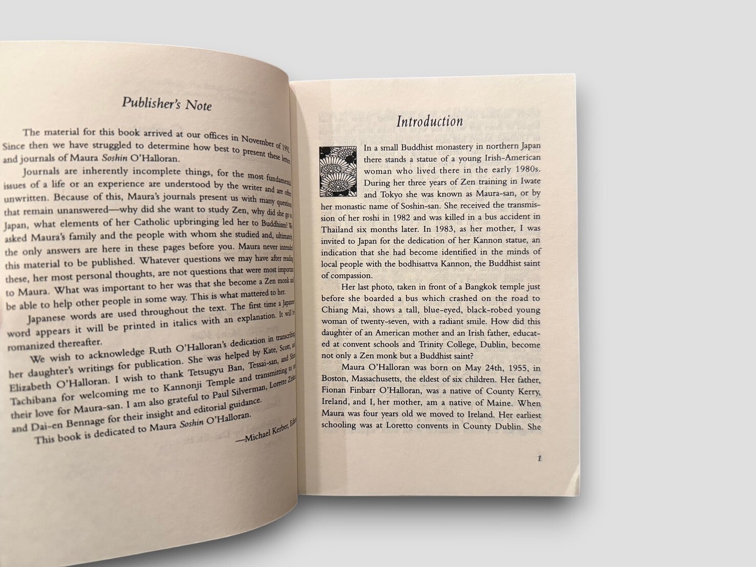 A collection of journals and letters by Maura O'Halloran documenting her Zen training in Japan. First published in 1994. This edition was published in 1995 and includes personal reflections and correspondence arranged chronologically.