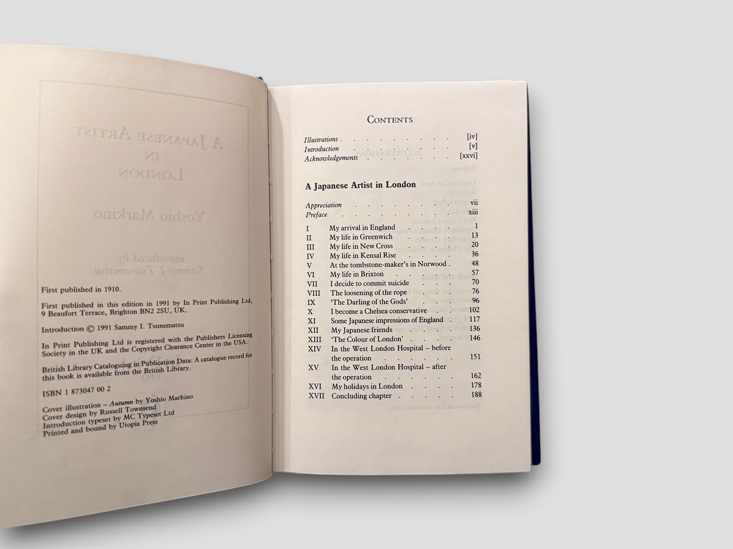A personal account by Yoshio Markino describing his life and work in London in the early 20th century. Originally published in 1910, this edition is a later reprint. The text is organized into chapters based on different aspects of his experience in London.