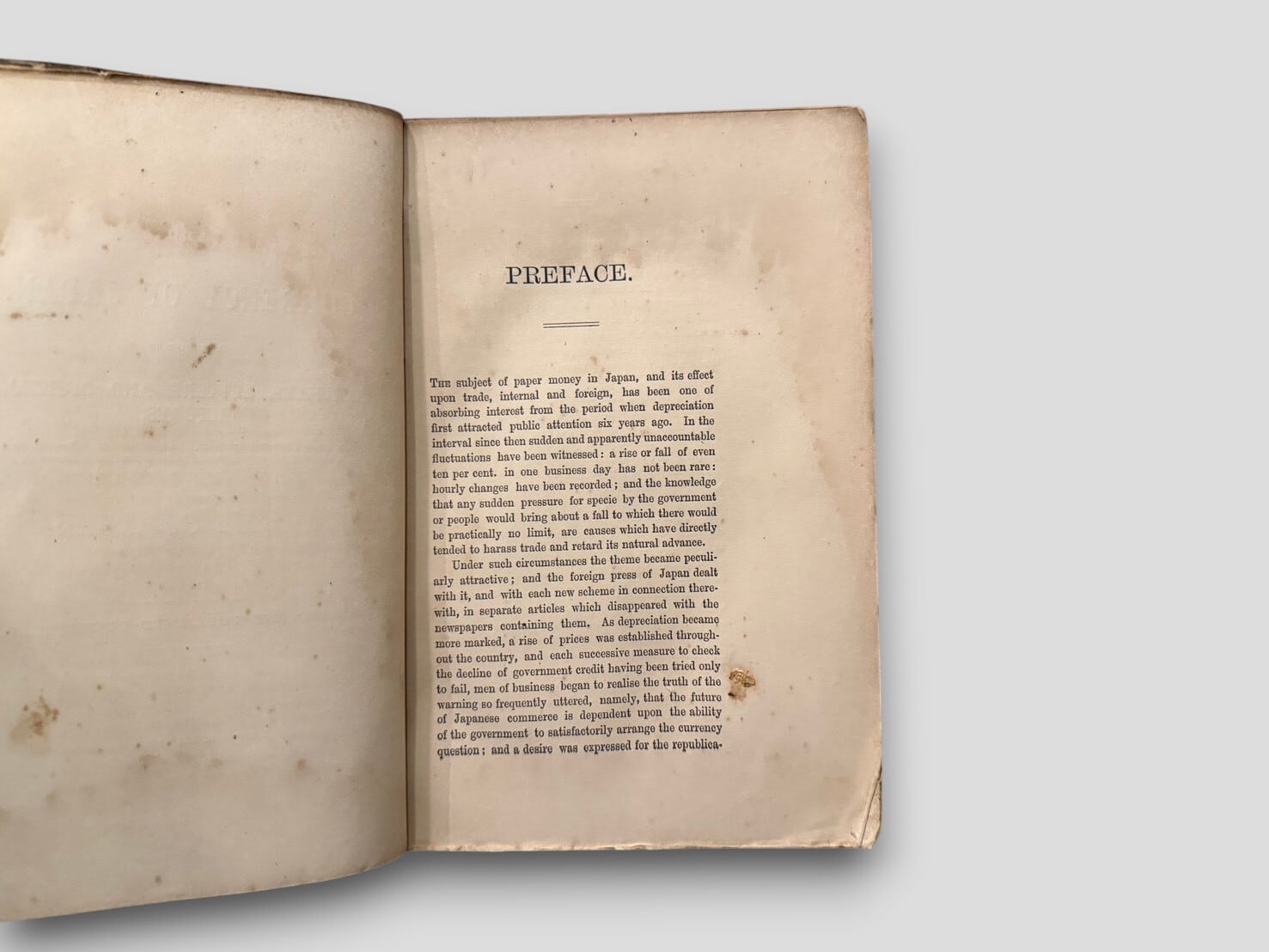 The Currency of Japan. A Reprint of Articles, Letters, and Official Reports, Published at Intervals in the Foreign Newspapers of Japan, Together with Translations from Japanese Journals, Relating to the Currency, Paper and Metallic, of the Empire of Japan