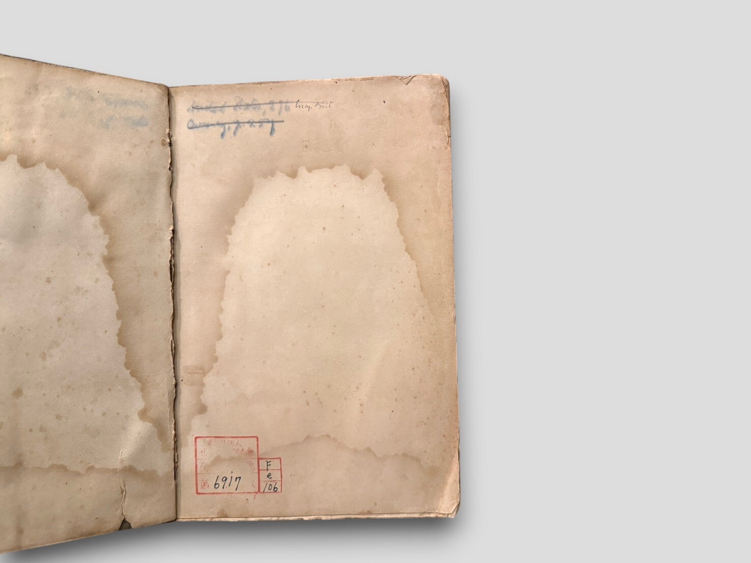 Pages : Poor - 非常に目立つシミ全体に有/ヤケ目立ち有/フロントフライリーフに書き込み印複数有/タイトルページに蔵書印有/小さな赤い印がページ内に複数有