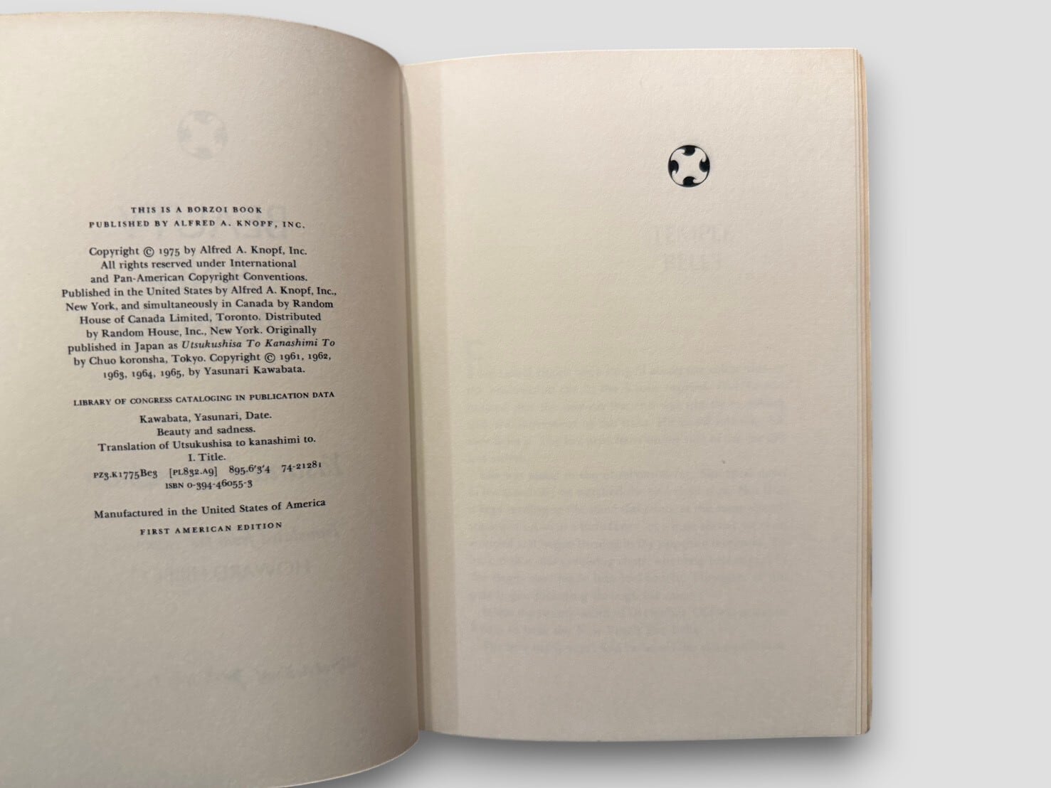 【SJ893】【FIRST AMERICAN EDITION】Beauty and Sadness(1975) /Yasunari Kawabata