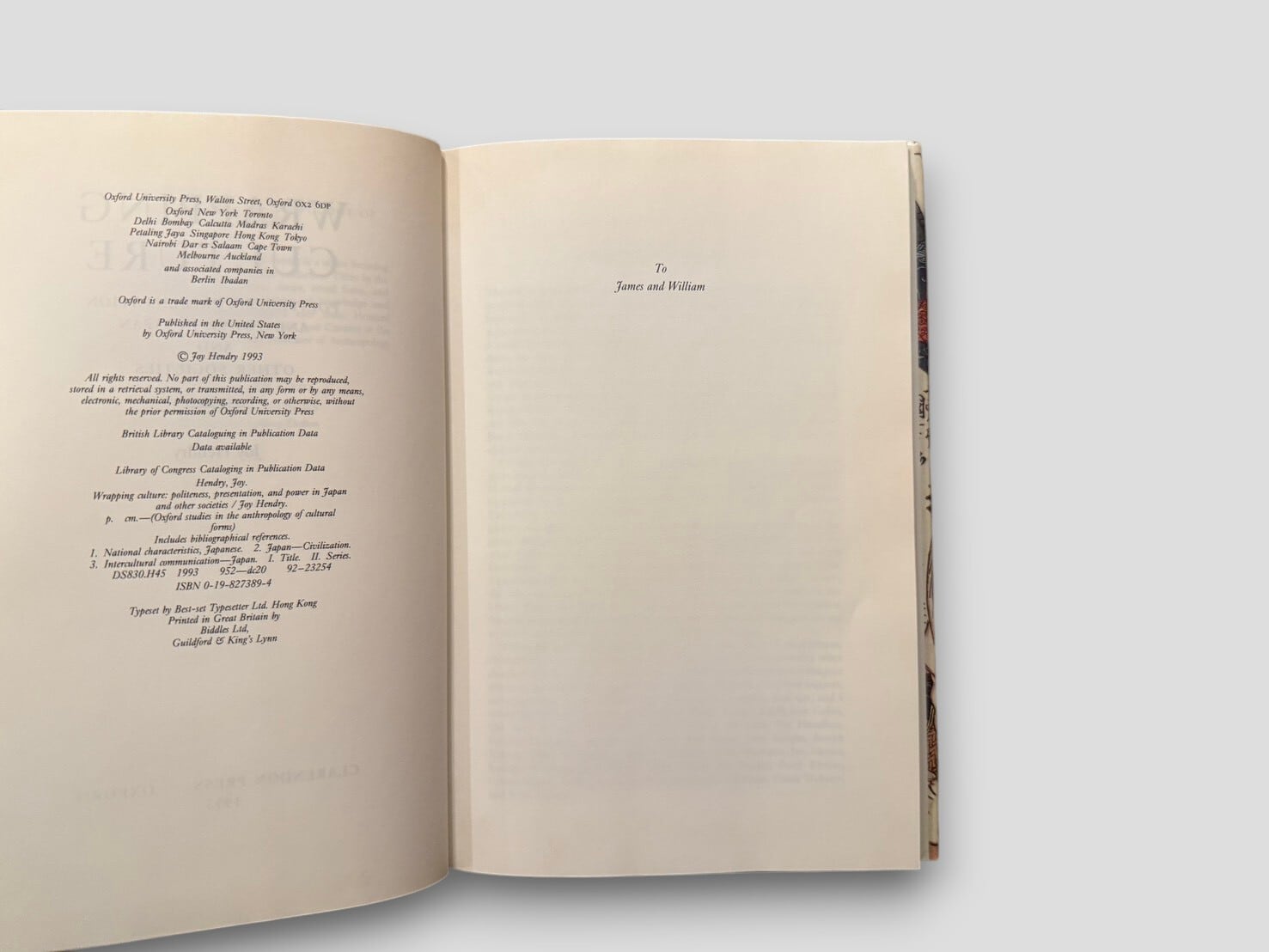 【SJ898】【FIRST EDITION】Wrapping Culture: Politeness, Presentation, and Power in Japan and Other Societies(1993) /Joy Hendry