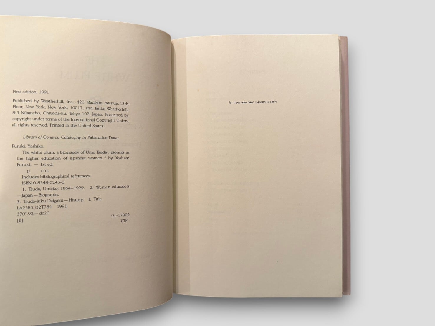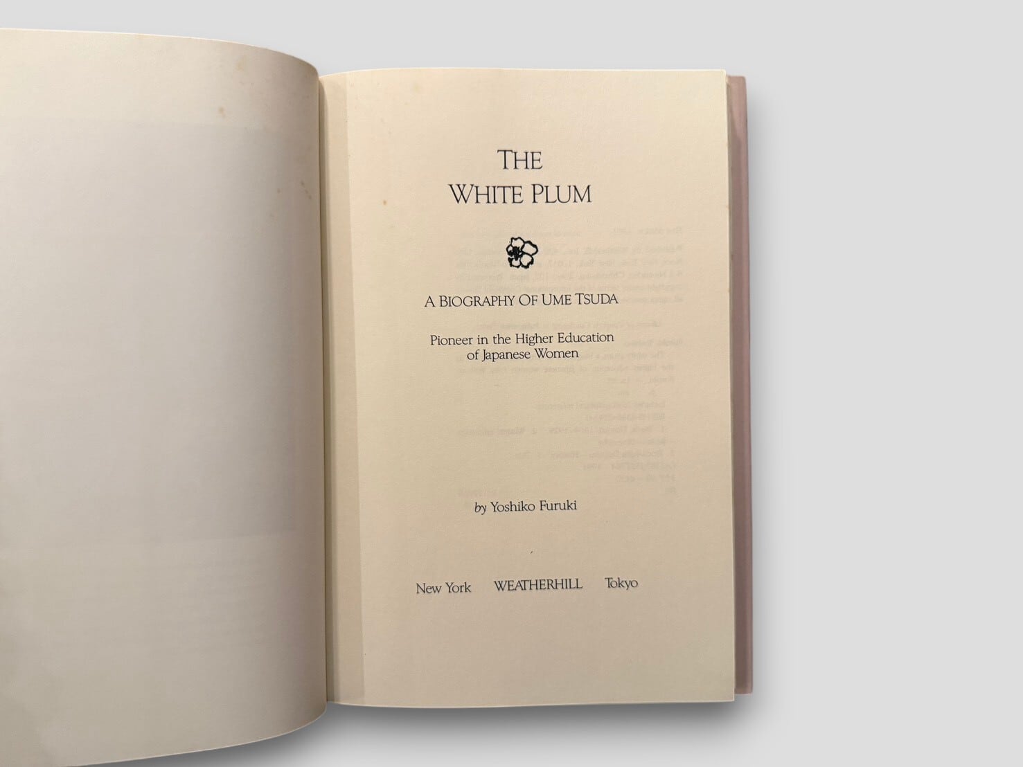 【SJ902】【FIRST EDITION】The White Plum: A Biography of Ume Tsuda(1991) /Yoshiko Furuki