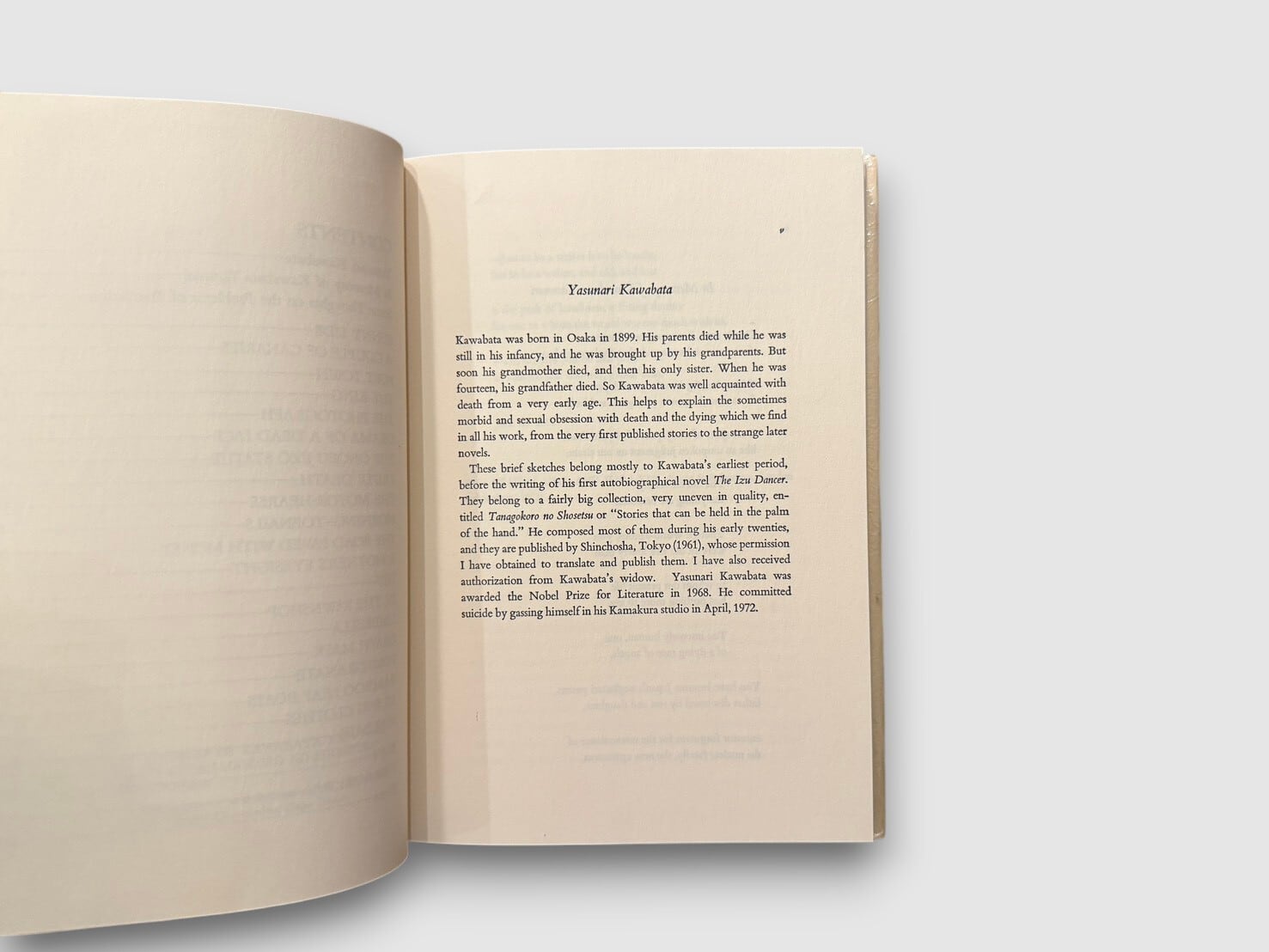 A collection of short prose pieces by Kawabata Yasunari selected from his "Tanagokoro no shosetsu." The volume includes English translations by James Kirkup and Tsutomu Fukuda with notes. It also contains essays related to translation.