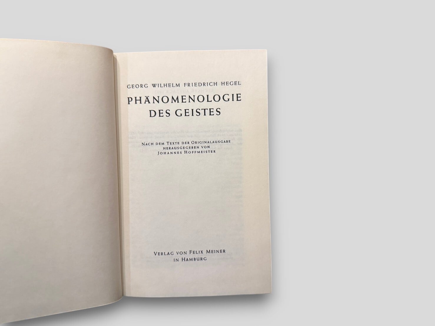 ドイツ観念論を代表する哲学者ヘーゲルによる主著『精神現象学』。意識から自己意識、理性、精神へと至る過程を描き出す体系的著作であり、近代哲学における重要な位置を占める。本書はFelix Meiner VerlagによるPhilosophische Bibliothek叢書の一冊で、Johannes Hoffmeisterによって原典に基づき編集された版である。ドイツ語原文で、意識がどのように自己へと至るのかを静かにたどる一冊。