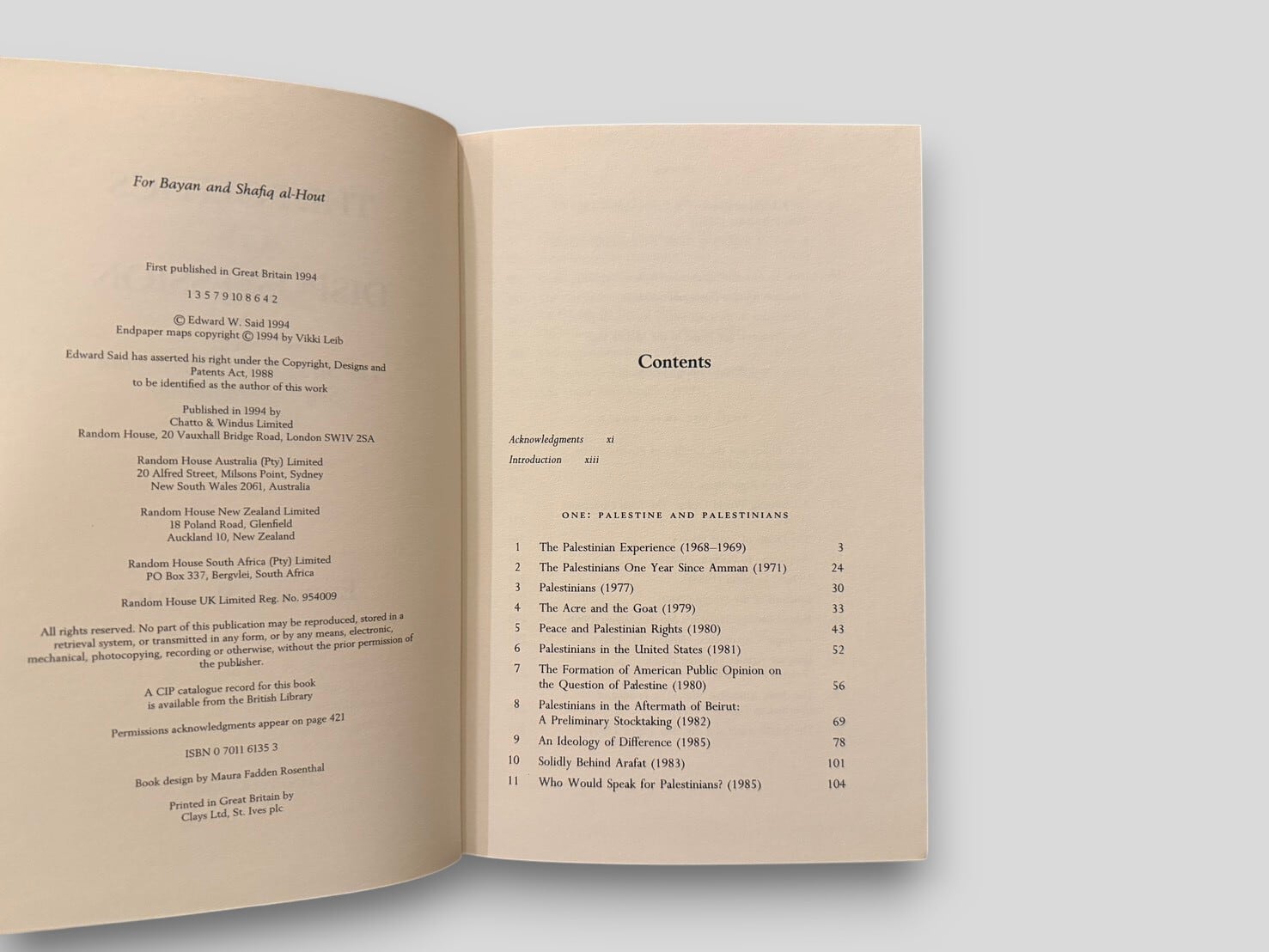 A first edition of Edward W. Said's The Politics of Dispossession, published in 1994 by Chatto & Windus Ltd.
