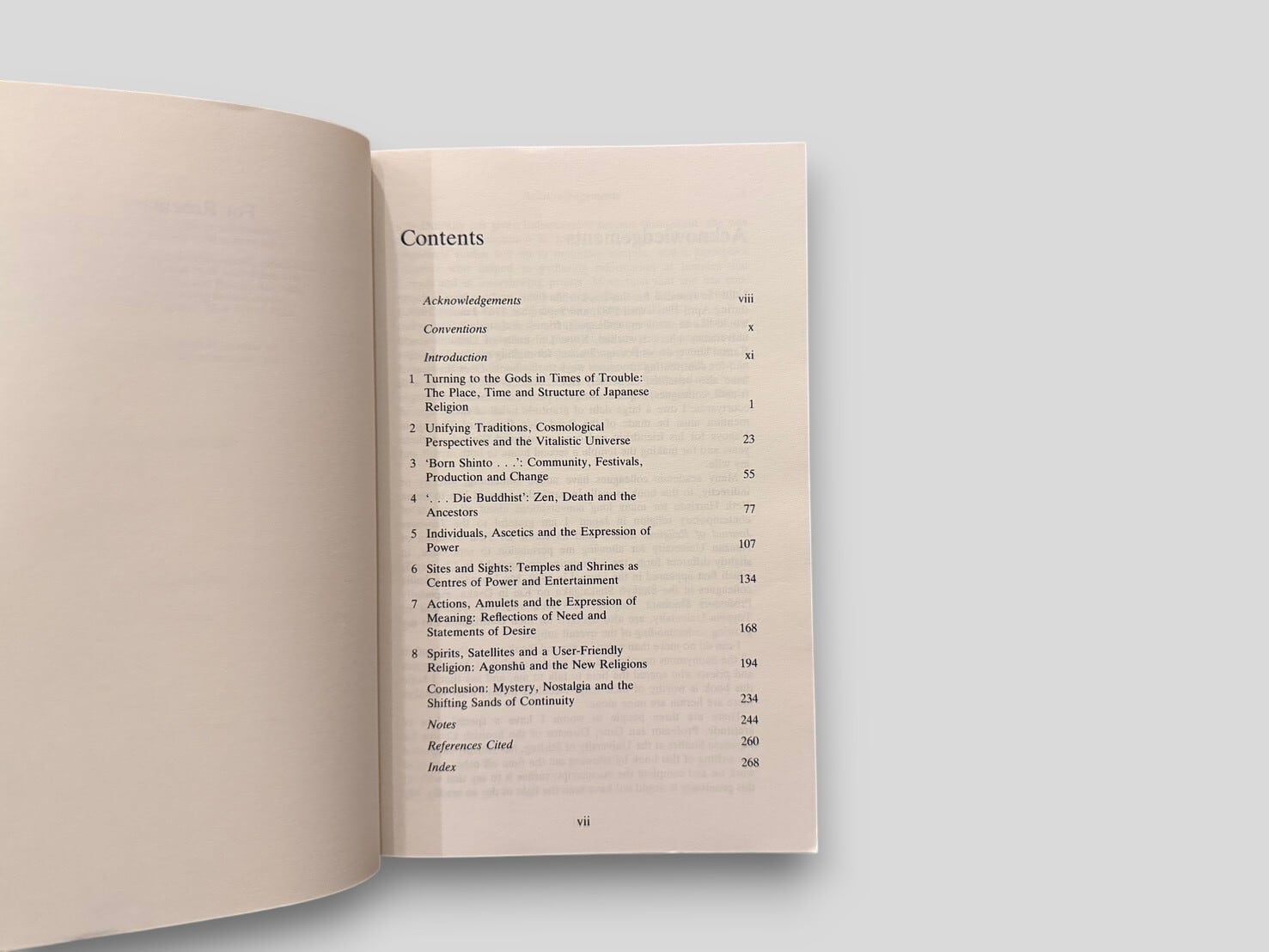 日本宗教研究を専門とする宗教学者、イアン・リーダーによる日本の現代宗教をフィールドワークを通じて読み解いた研究書。神道・仏教・新宗教といった多様な宗教実践を対象に、人々の日常生活の中で宗教がどのように機能しているのかを具体的に描き出す。寺社参詣や修行、祭礼、そして新宗教の活動に至るまで、個人の行為と社会の構造との関係を丁寧にたどりながら、近代化以降の日本社会における宗教の変容を浮かび上がらせる。外から理論的に語るのではなく、内側から観察する視線によって、日本宗教の多層的な姿を静かに描き出した重要な1冊。