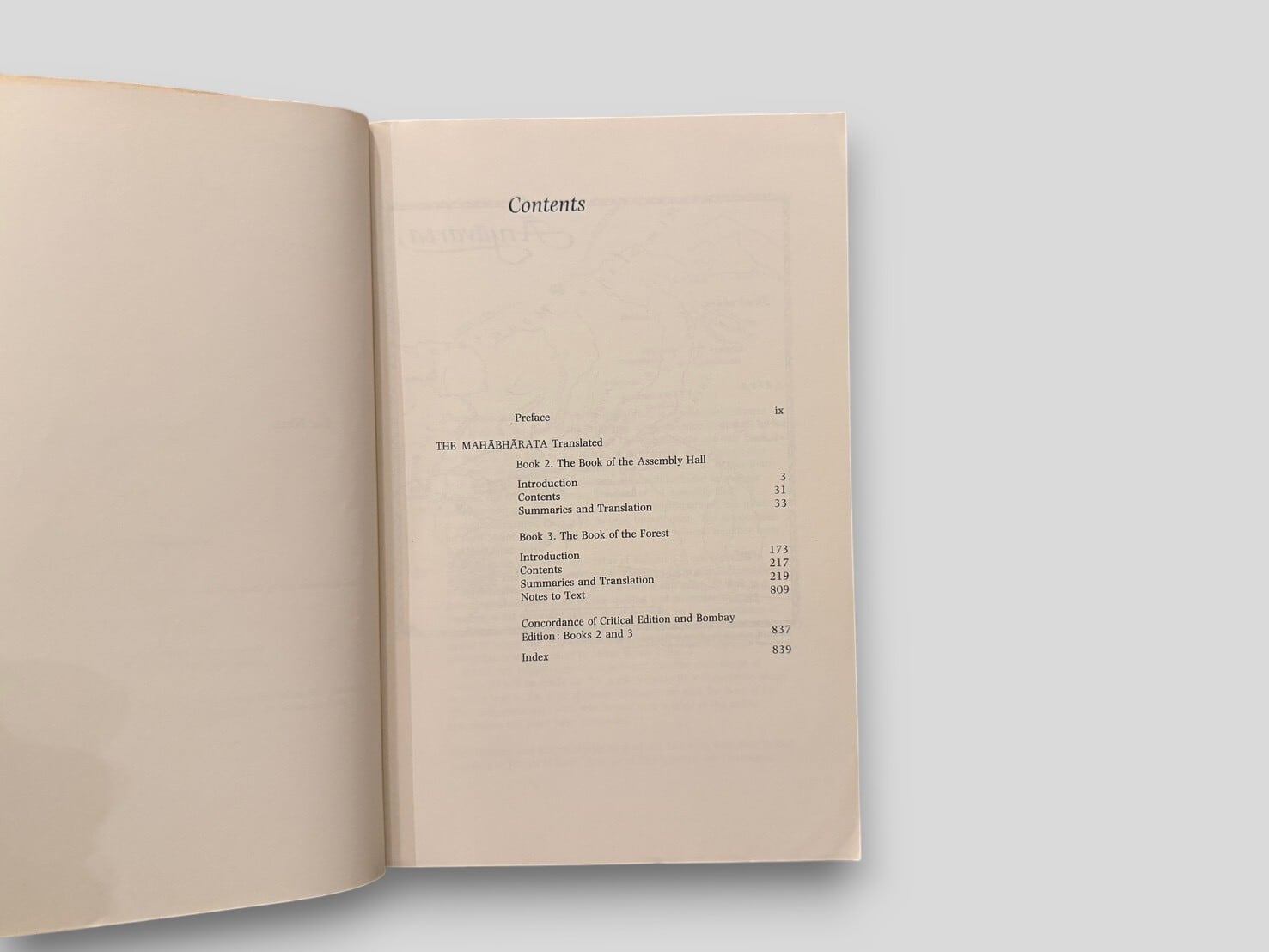 古代インドの大叙事詩『マハーバーラタ』のサンスクリット原典に基づく英訳シリーズの一巻。本書はVolume 2にあたり、「The Book of the Assembly Hall」と「The Book of the Forest」の2部を収録した構成である。王宮における政治的出来事と、その後の追放と放浪が描かれる部分に対応し、叙事詩の展開が大きく進む巻である。叙事詩の物語が展開していく過程を収めた一冊。