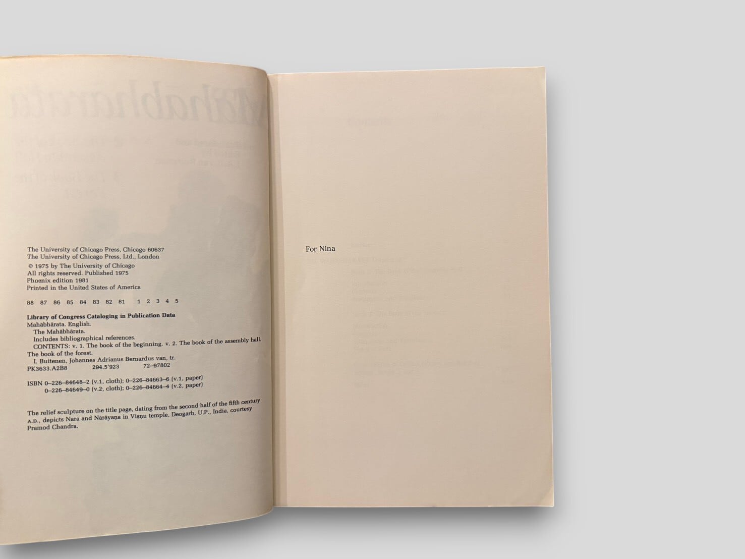 【SL1166】The Mahābhārata, Volume 2: The Book of the Assembly Hall / The Book of the Forest(1981) /J. A. B. van Buitenen
