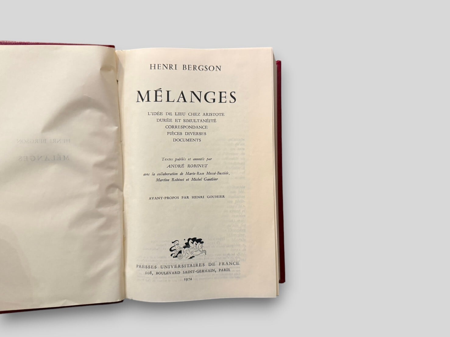 【SFF264】Mélanges: L’idée de lieu chez Aristote, Durée et simultanéité, Correspondance, Pièces diverses, Documents(1972) /Henri Bergson