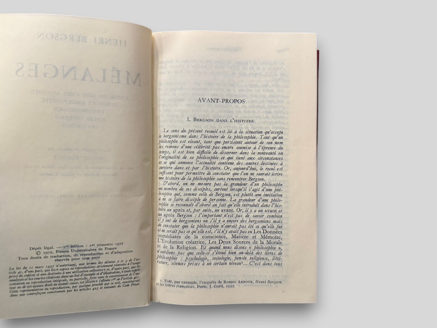 A collection of texts and documents by Henri Bergson, published in 1972.