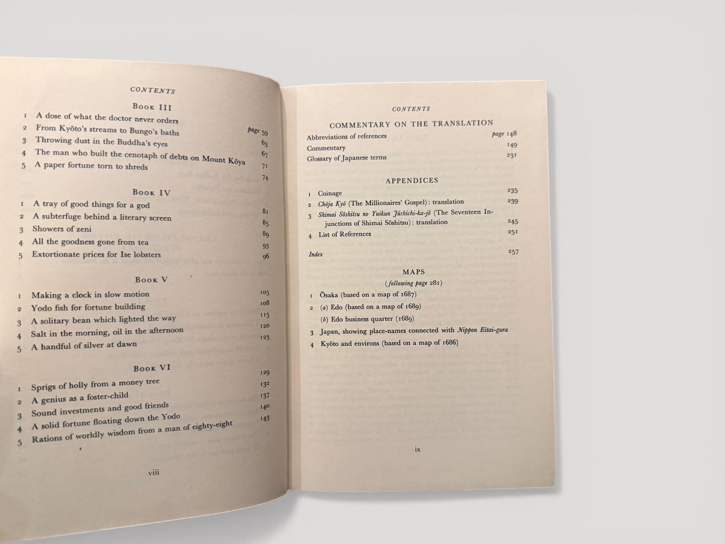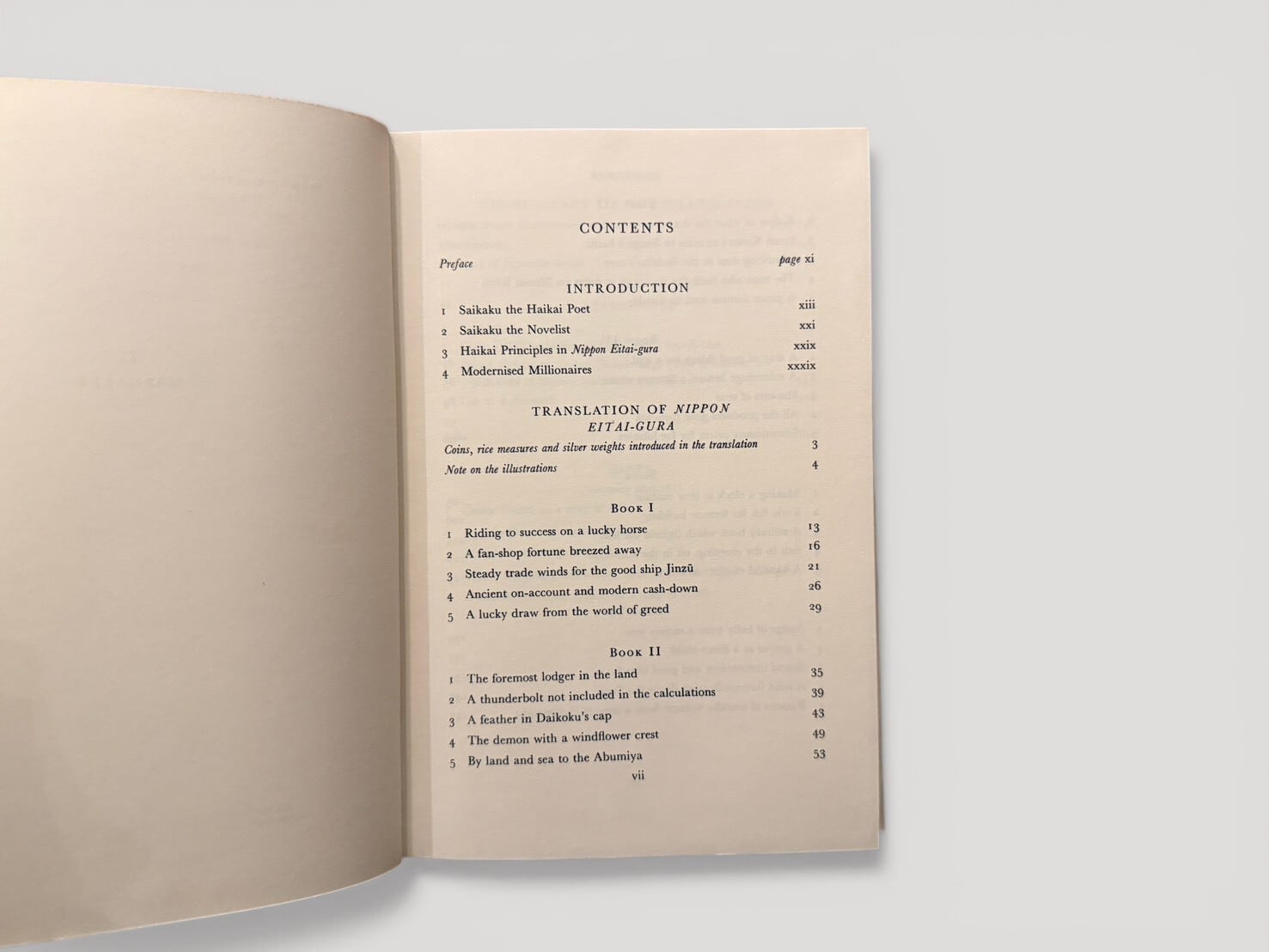The book presents an English translation of Ihara Saikaku’s Nippon Eitaigura (1688), with introduction and commentary by G. W. Sargent.