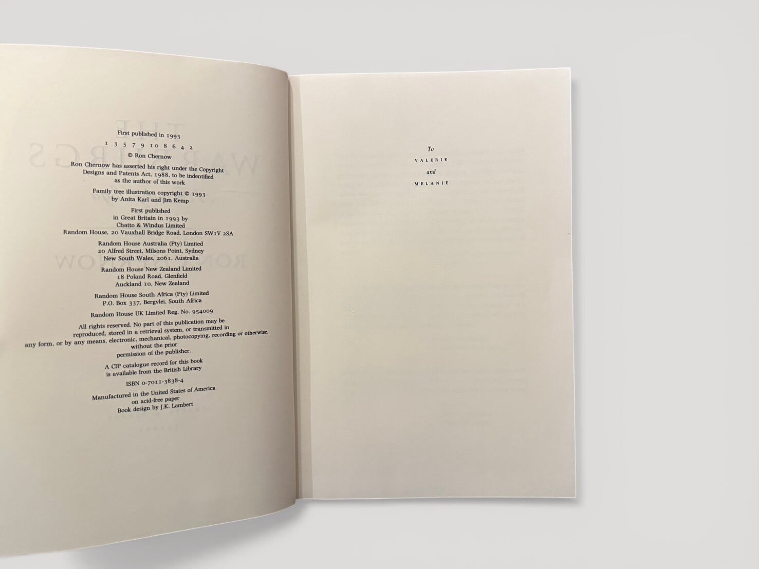 First published in 1993 by Chatto & Windus, this is the first edition.