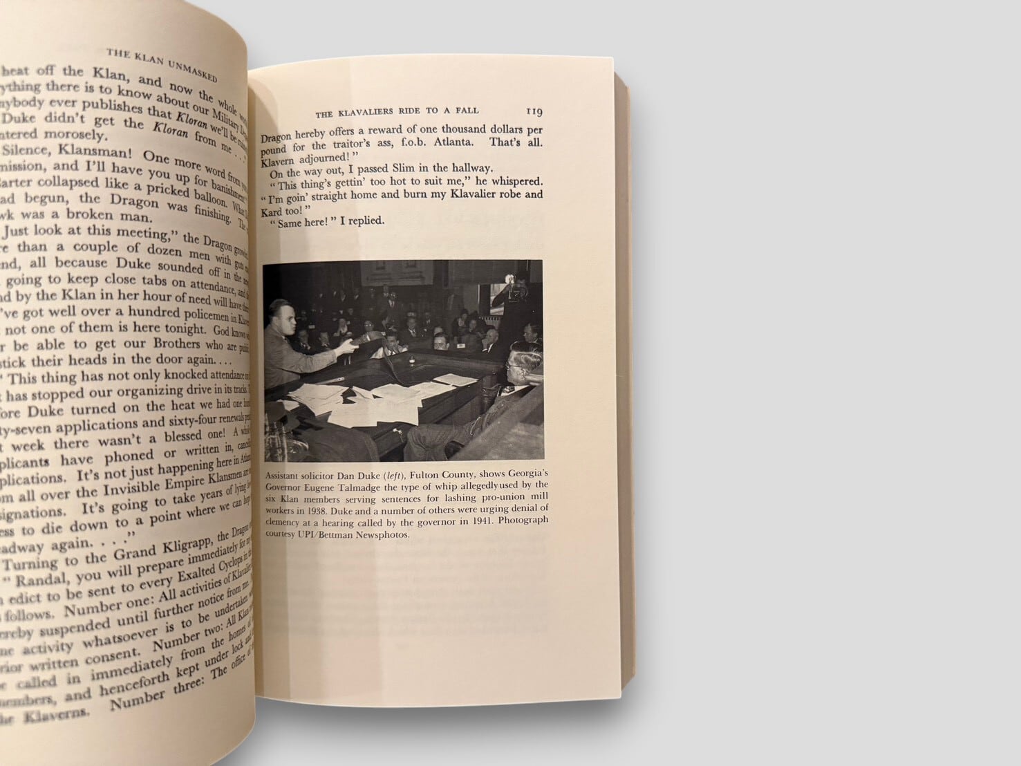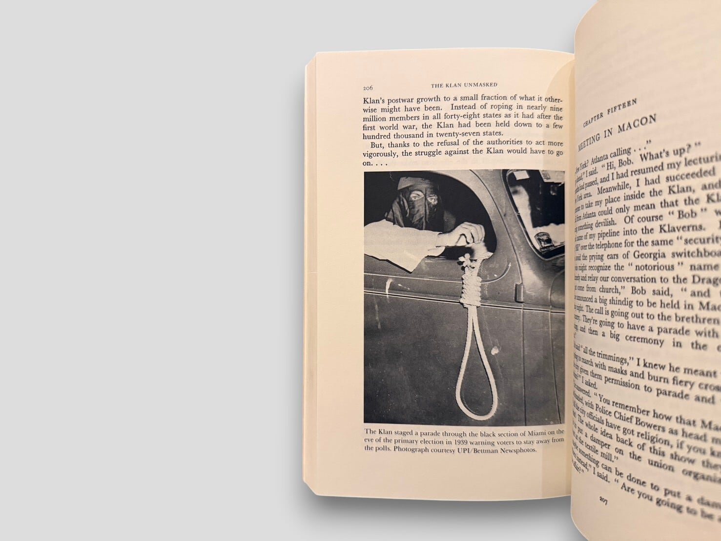 アメリカの作家ステットソン・ケネディによるクー・クラックス・クランの活動を、著者の記録から記述した調査記録書。本書は、著者が収集した内部情報や証言に基づき、組織の構造や活動を記述した内容で構成されている。写真多数収録。20世紀アメリカの社会運動の一側面を辿れる1冊。