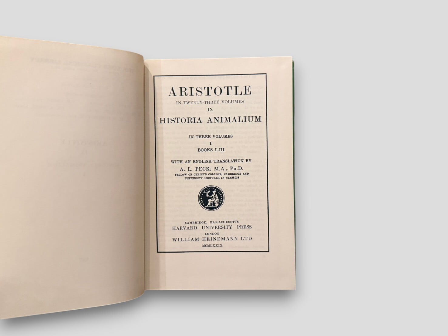 Volumes I and II are translated by A. L. Peck, and Volume III reflects the revised edition translated by D. M. Balme.
